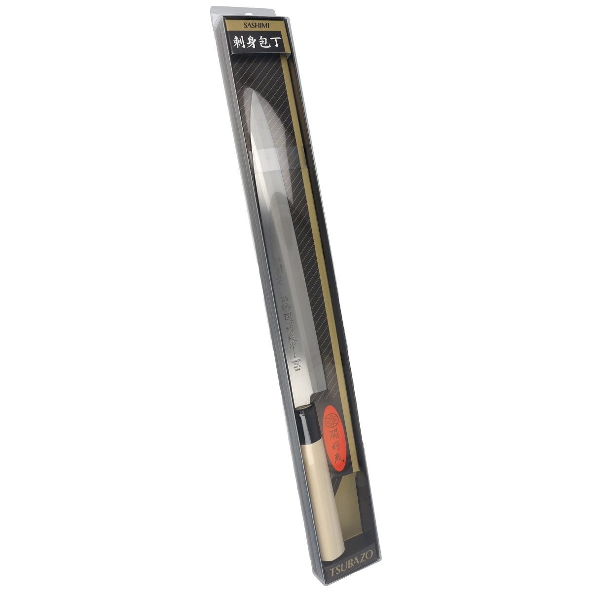 Due Cigni Sashimi 270mm ze stali nierdzewnej 420JS. Wykonany przez rzemieślników w Japonii, z wygodną, okrągłą rękojeścią z drewna klonu. Długie, wąskie ostrze doskonale sprawdzi się przy cięciu wędlin czy ryb na sushi. Uwaga!!! Bardzo ostre!!!