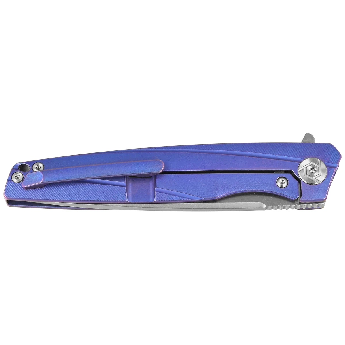 803CH Blue Titanium / Carbon Fiber, Satin, duży i smukły nóż składany EDC od Rike Knife. Elegancki wygląd, rękojeści z tytanu, szybkie otwieranie przy pomocy flippera. Do tego doskonała stal narzędziowa M390. Doskonały towarzysz na co dzień!