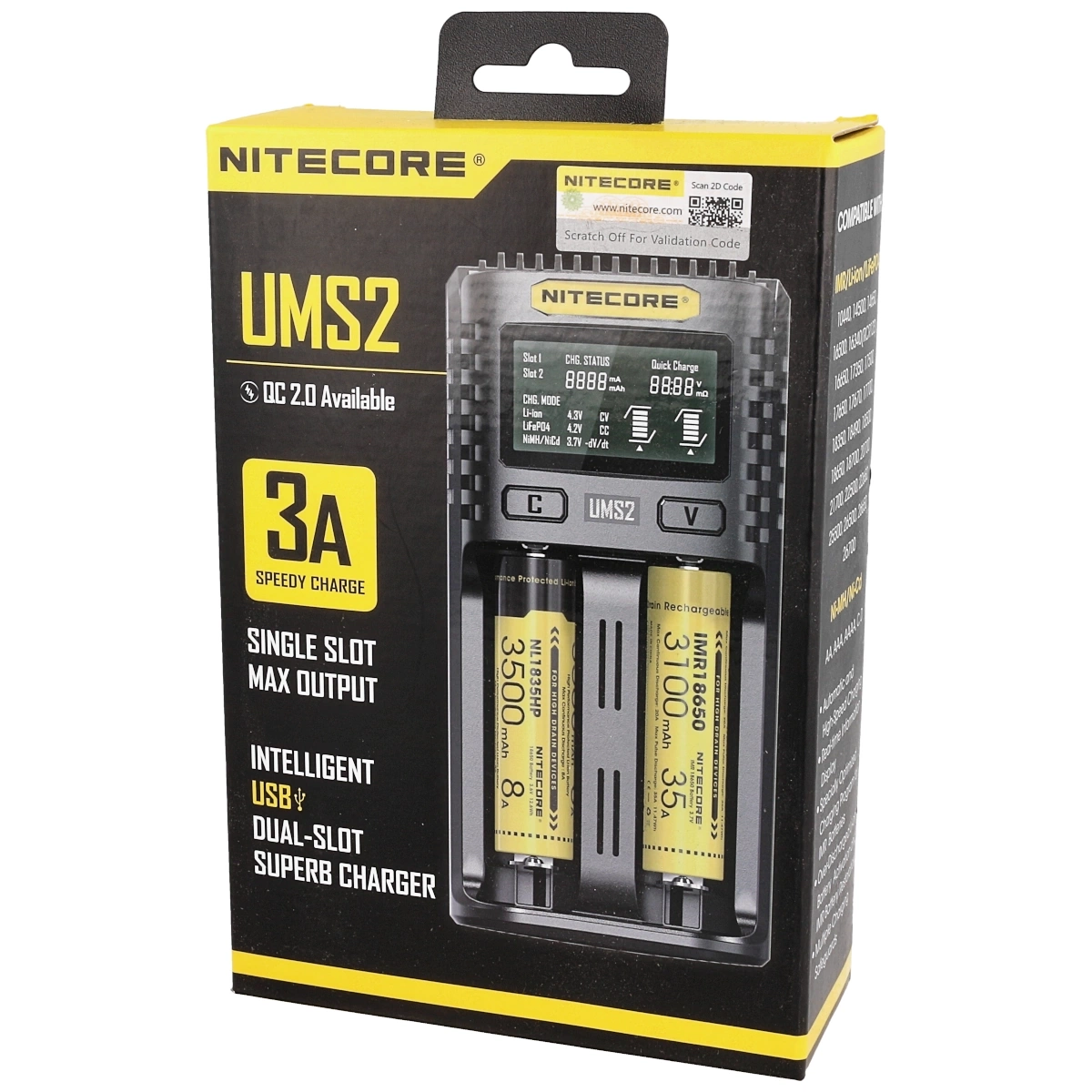 - Nitecore UMS2 to zaawansowana technicznie ładowarka USB do akumulatorów litowo-jonowych. Oferując kompatybilność z szerszą gamą baterii, ta wygodna ładowarka może być używana z bateriami o dużych rozmiarach, w tym z ogniwami 20700 i 21700.