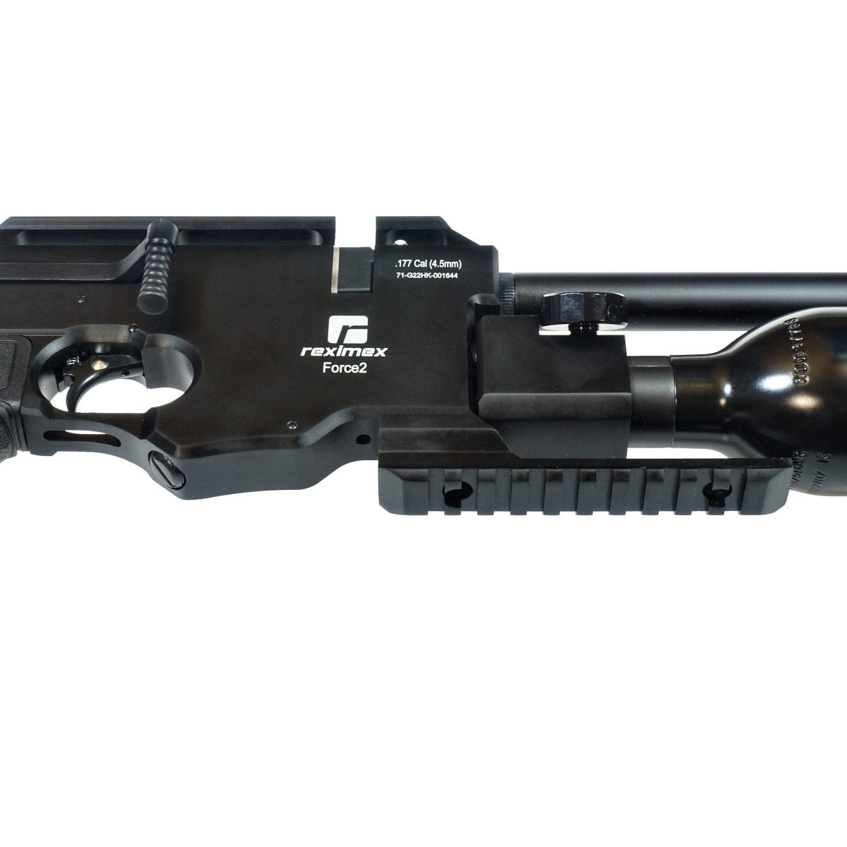 - Reximex Force2, nowoczesna wiatrówka PCP w praktycznej osadzie taktycznej z chwytem pistoletowym, teleskopową kolbą oraz ruchomą stopką i baką policzkową. Dostępna w kalibrach: .177 (4.5 mm), .22 (5.5 mm), .25 (6.35 mm)