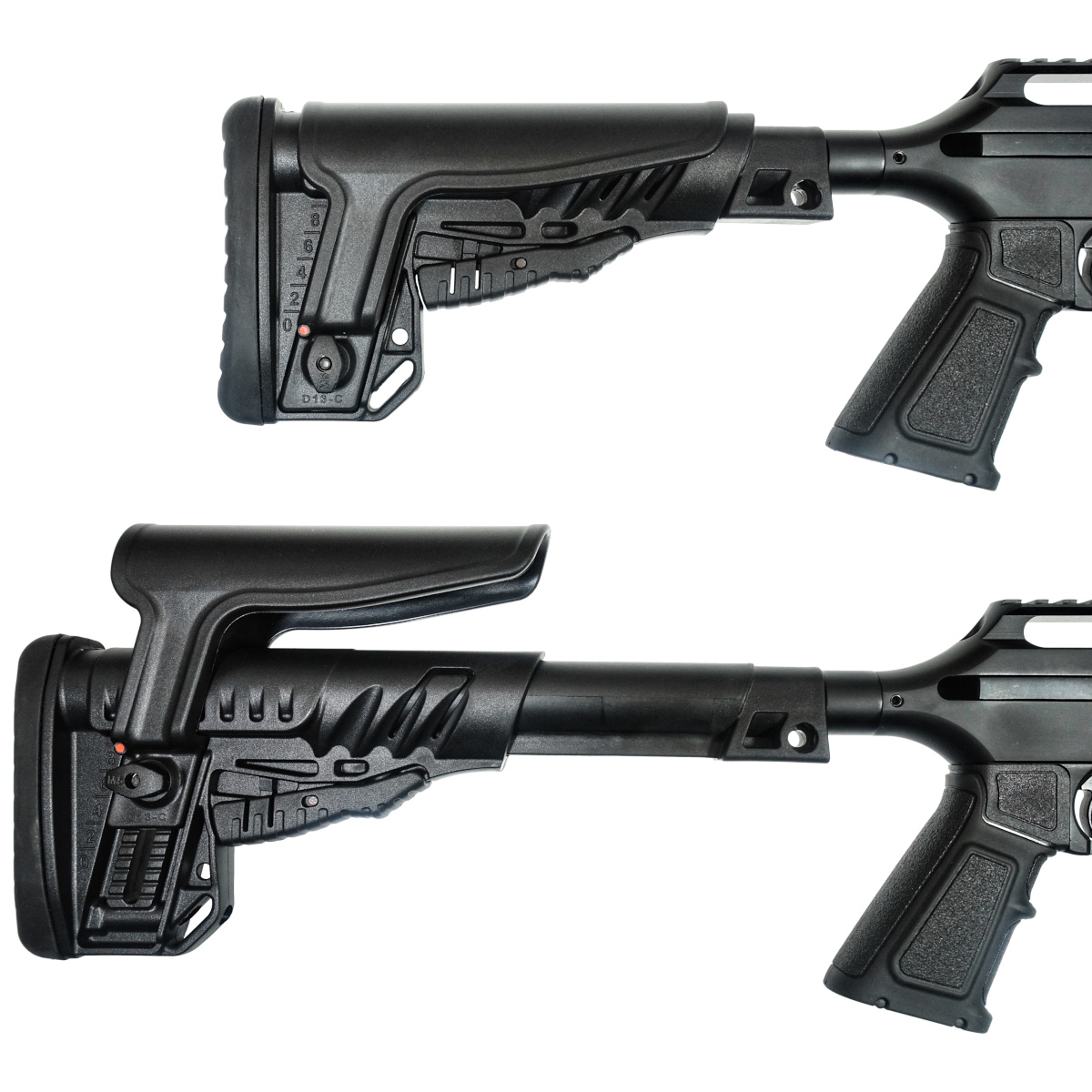 Osada - typu taktycznego z ergonomicznym chwytem pistoletowym, ułatwiającym stabilne utrzymanie broni podczas strzelania. Wykonana z wytrzymałego polimeru w kolorze czarnym. Teleskopową kolbę z regulowaną baką policzkową zakończono gumową stopką.