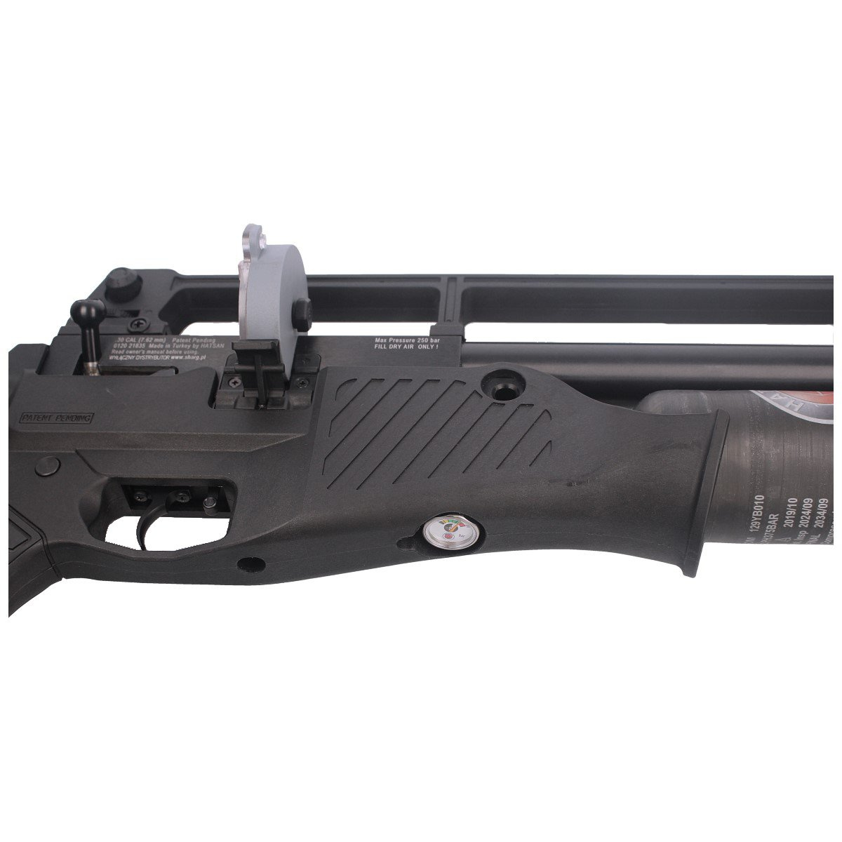 Wyposażenie dodatkowe - dysza Quick-Fill do szybkiego napełniania zbiornika powietrzem za pomocą pompki PCP (Hatsan Hand Pump) lub butli technicznej / nurkowej (300 bar). Klucz imbusowy, zestaw o-ringów, silikonowych uszczelek. Bączki do mocowania zawieszenia taktycznego.