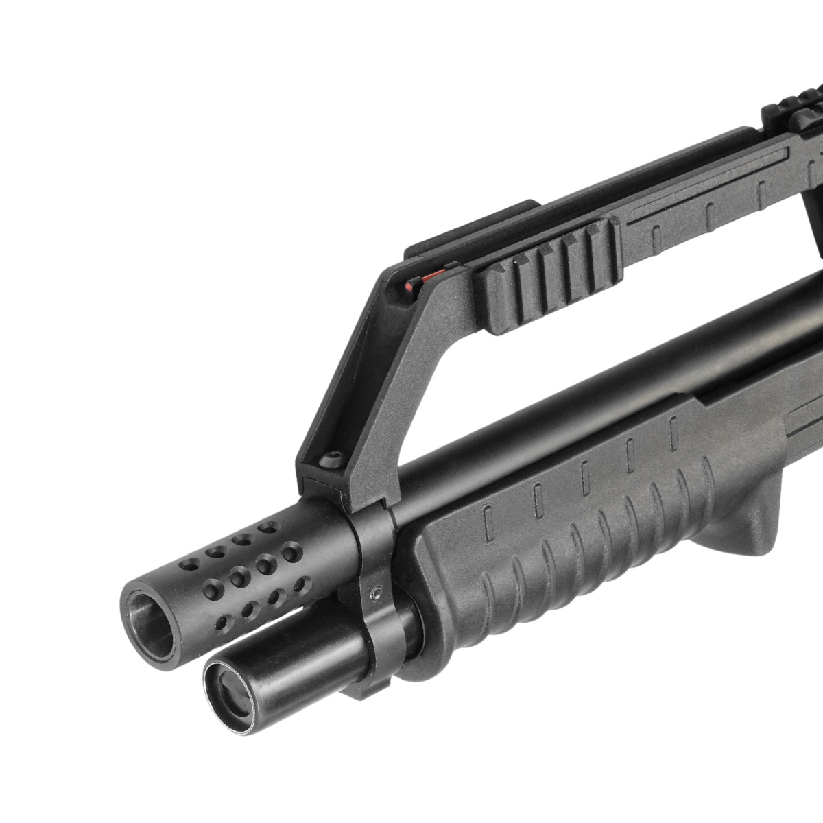 Hatsan Escort Bull Tac posiada wykonaną z wytrzymałego polimeru osadę bezkolbową, dzięki której uzyskano kompaktowe wymiary. Strzelba jest na tyle perfekcyjnie wyważona, że na płaskiej powierzchni można ją postawić na chwycie pistoletowym. Gumowana stopka zapewni komfort podczas strzelania.