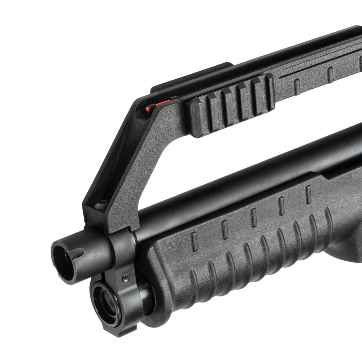 Gumowany chwyt pistoletowy zapewnia pewne trzymanie. Uchwyt transportowy wyposażony jest w szyny picatinny 22 mm oraz przyrządy celownicze. Światłowodowa muszka TruGlo gwarantuje łatwe zgranie przyrządów. W pełni regulowana szczerbinka posiada możliwość przełączenia na tryb przeziernikowy.