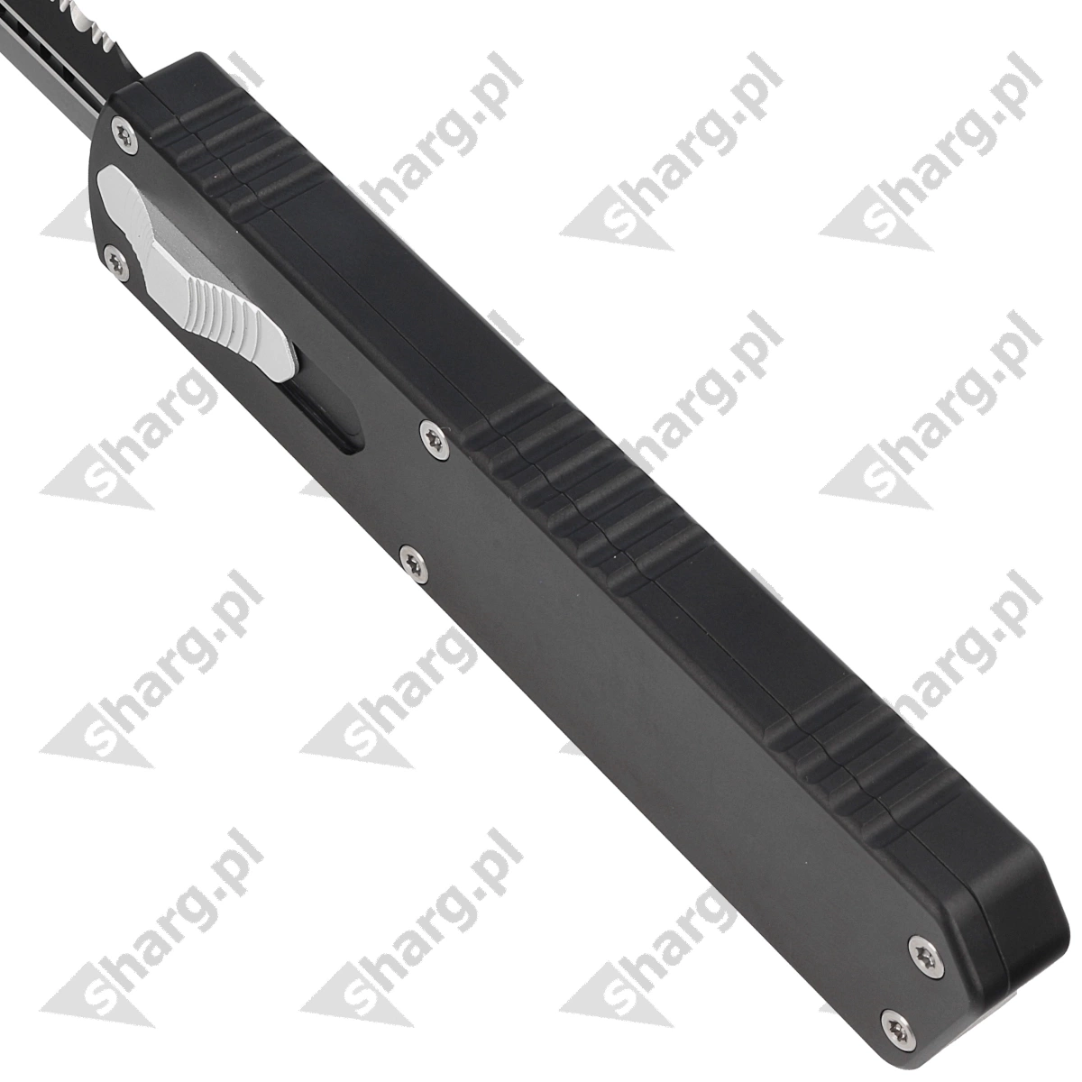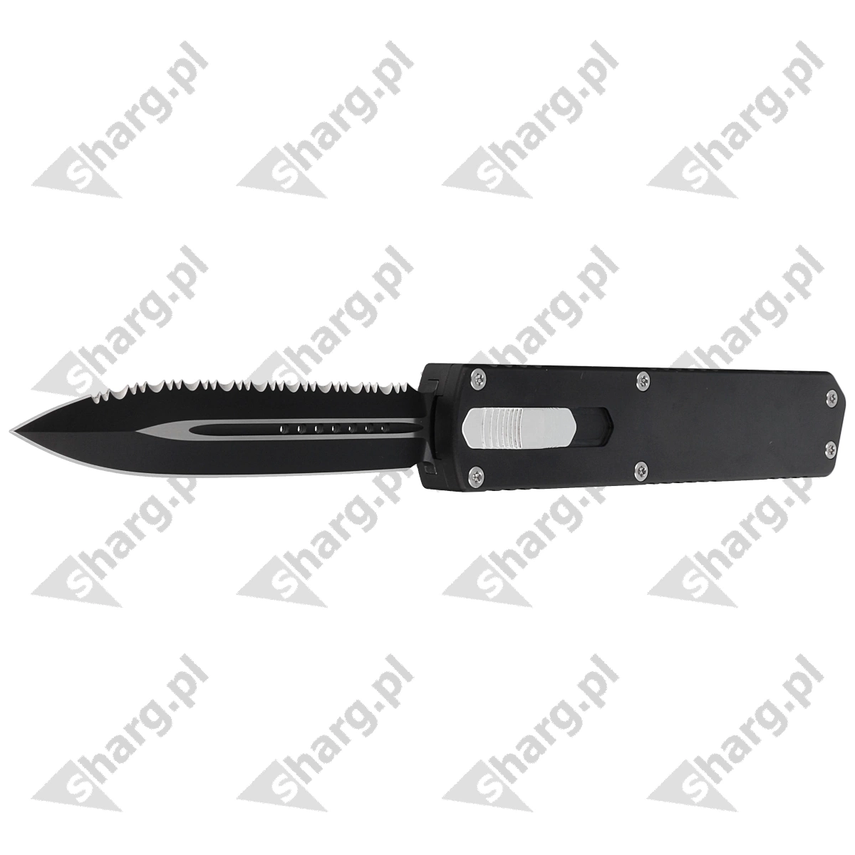 Nighthawk V2 Double Edge Black Aluminum, DLC nóż automatyczny OTF (Out The Front) z głownią wysuwaną z przodu dzięki mocnej sprężynie. Pracuje w trybie D/A (Double Action) czyli za pomocą suwaka umieszczonego na boku rękojeści wysuwamy i chowamy głownię. Centralne umieszczenie przełącznika umożliwia leworęcznym operatorom korzystanie z noża z obusiecznym symetrycznym ostrzem.