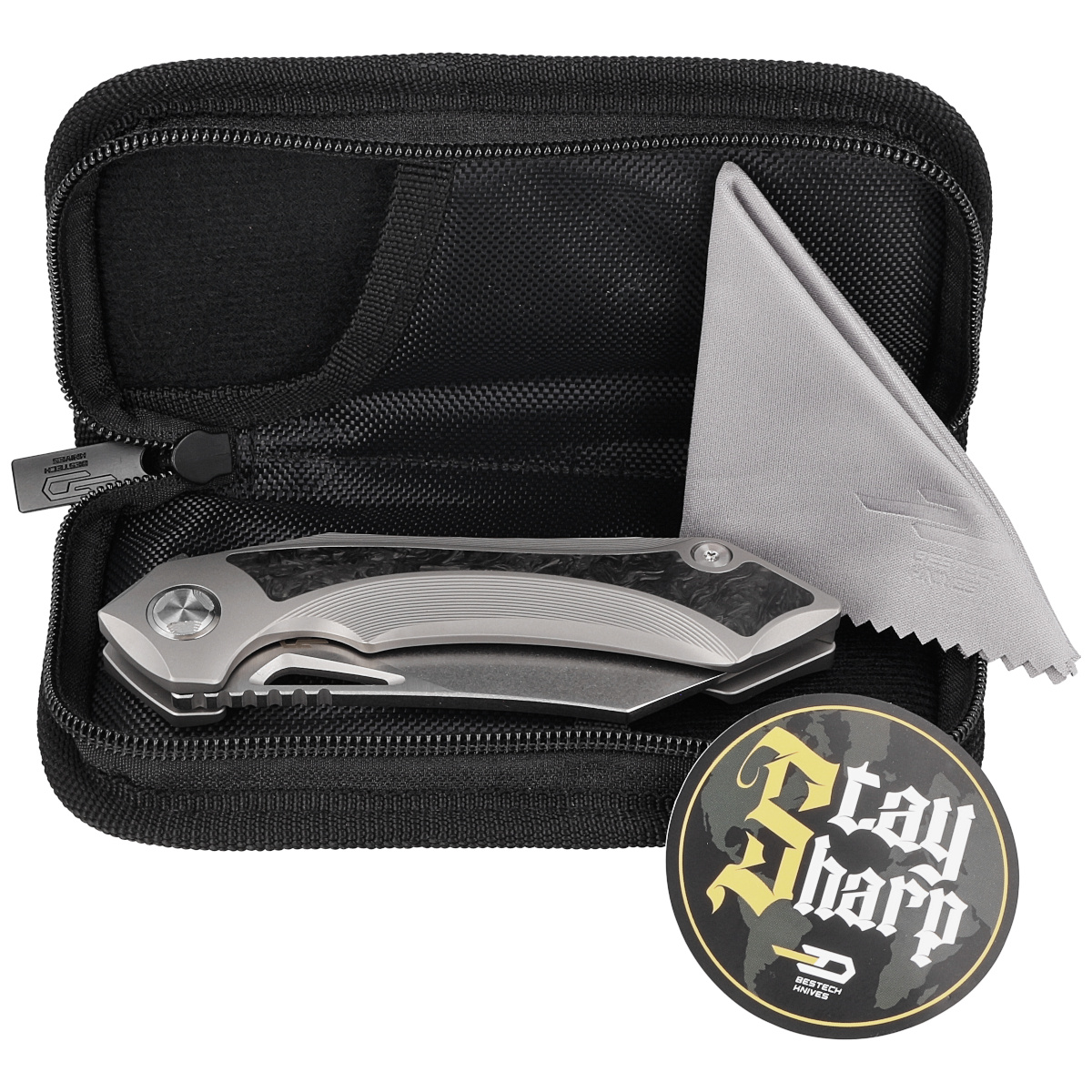 Nóż składany Bestech Kasta Grey Titanium / Marble Carbon Fiber, Mirror Stonewash M390 by Kombou (BT1909A)