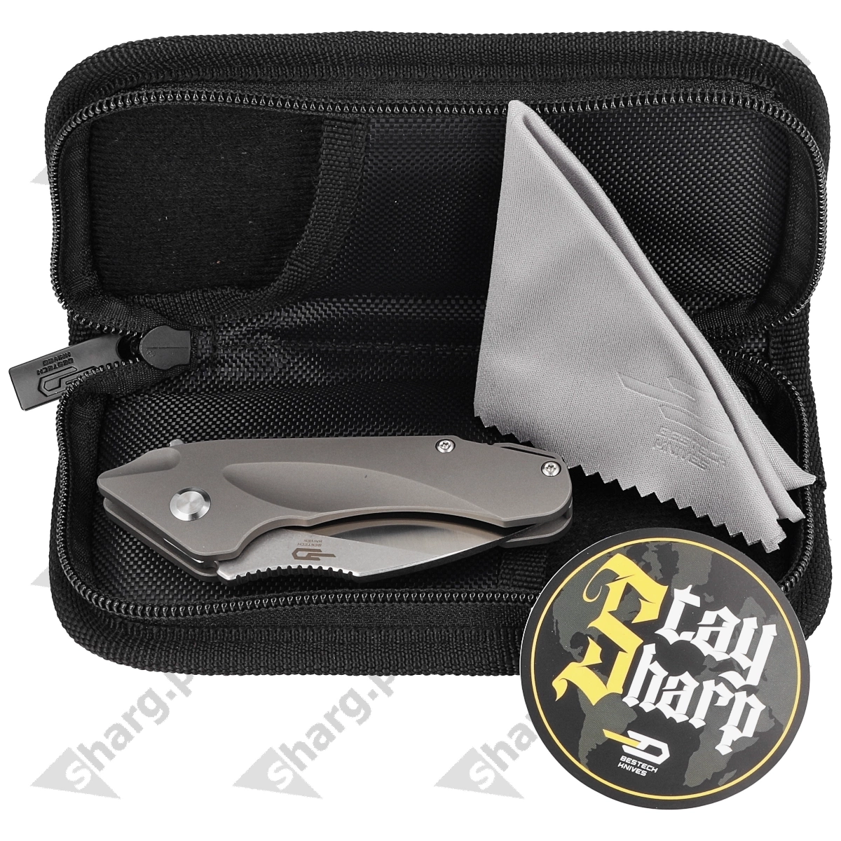 Futerał - nóż zapakowano w zapinany zamkiem nylonowy miękki pouch z logo marki służący do bezpiecznego przenoszenia i przechowywania foldera.