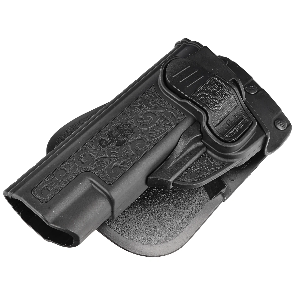 - 1911CH LH zewnętrzna kabura OWB lewa z profesjonalnej serii CH, zapewnia bezpieczeństwo przenoszenia broni. Mechanizm blokujący wymusza prawidłowy uchwyt podczas dobycia. Do Colt, Kimber, Remington, Ruger, SIG, S&W, Springfield, STI, Tanfoglio, Taurus.