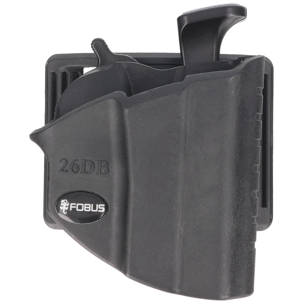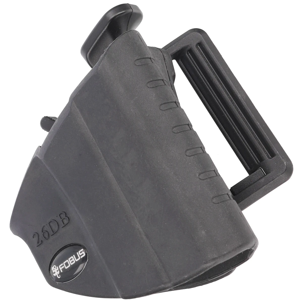 26DB profesjonalna kabura otwarta Fobus, typ DB. Do pistoletów Glock: 26, 27, 33. Wtryskiwana metodą formowania z odpornego na zarysowania, udar oraz ekstremalne temperatury tworzywa sztucznego o dużej gęstości.