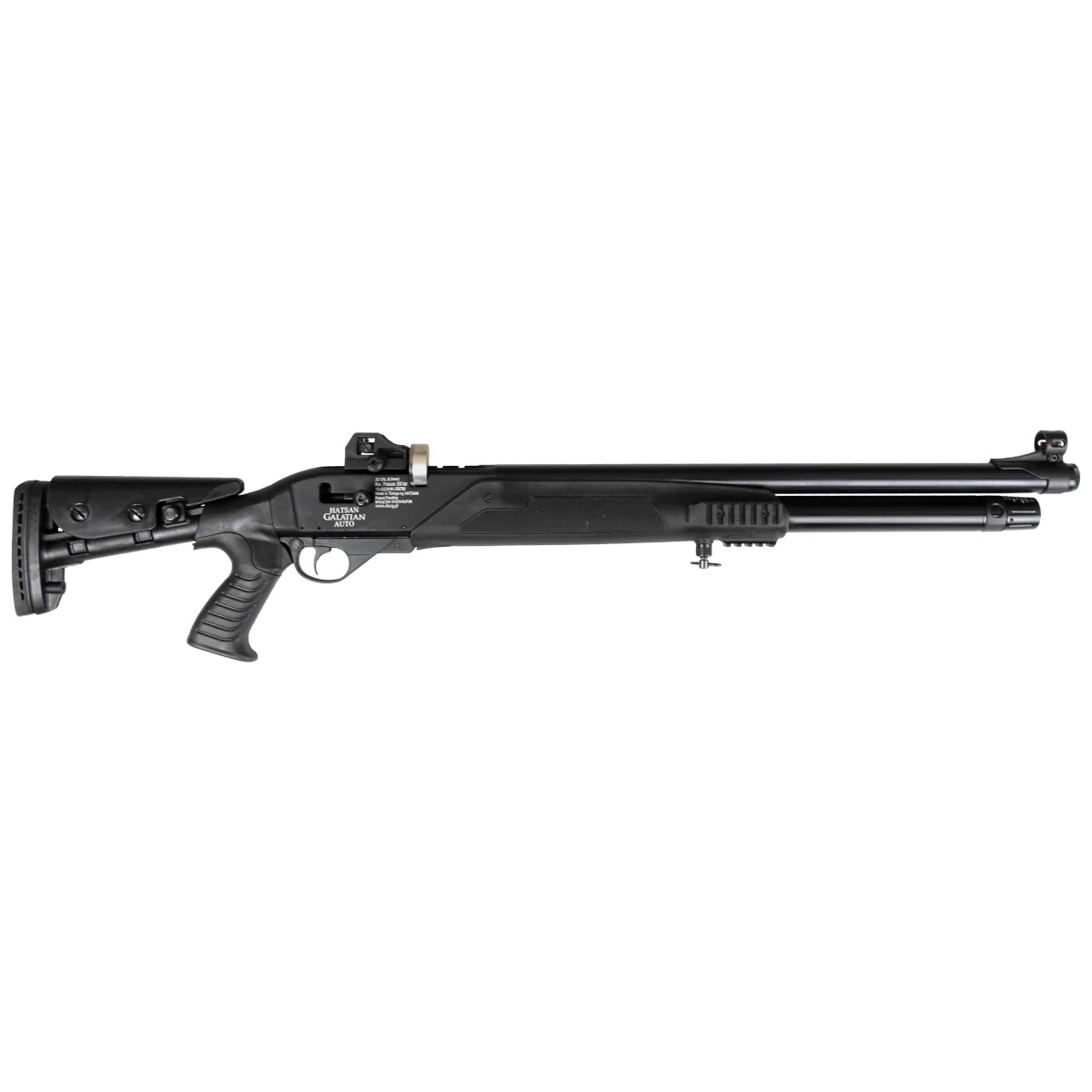 Galatian Tact Auto, półautomatyczna wiatrówka PCP firmy Hatsan w taktycznej osadzie z chwytem pistoletowym i z teleskopową kolbą. Automatyczne przeładowanie (tylko w wersji FAC*) pozwala na szybkie strzelanie bez zmiany linii celowania. Dostępna w kalibrach: .177 (4.5 mm), .22 (5.5 mm), .25 (6.35 mm).