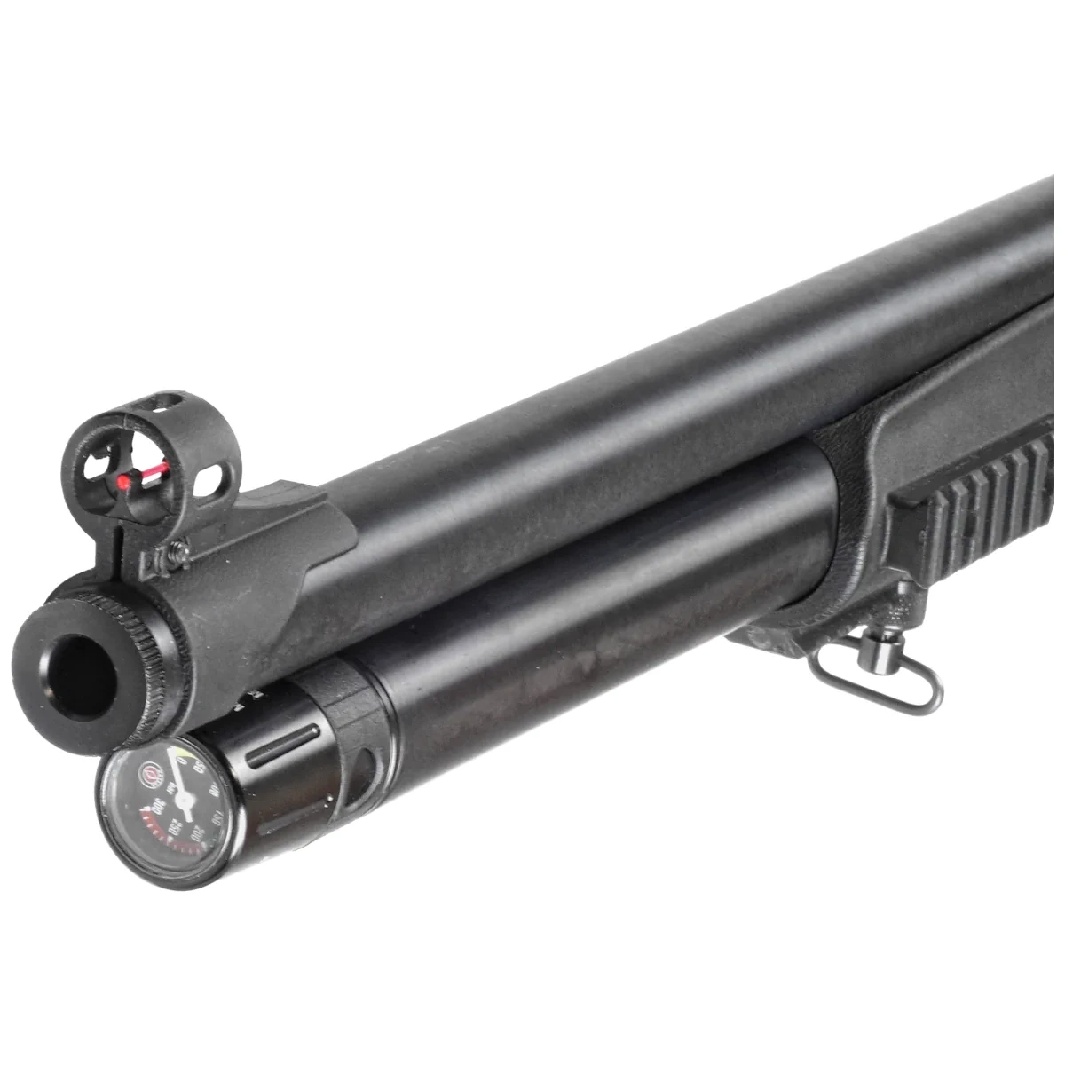 Zasilanie - wymienny zbiornik sprężonego powietrza o pojemności 255 cc. W pełni naładowany kartusz pozwala na oddanie 50 efektywnych strzałów (dane dla wersji FAC*). Wbudowany manometr umożliwia kontrolę ciśnienia znajdującego się w zbiorniku, a tym samym stopnień jego naładowania. Obrotowy pierścień osłaniający chroni port ładowania przed uszkodzeniem i pyłem. Po opróżnieniu sprężonego powietrza, pusty zbiornik może zostać zastąpiony nowym napełnionym (opcja). Stanowi to rozwiązanie dla osób nie zabierających pompki PCP czy butli na strzelnicę. 130 bar minimalne ciśnienie robocze w kartuszu niezbędne do prawidłowego działania wiatrówki z systemem Semi Auto Action.
