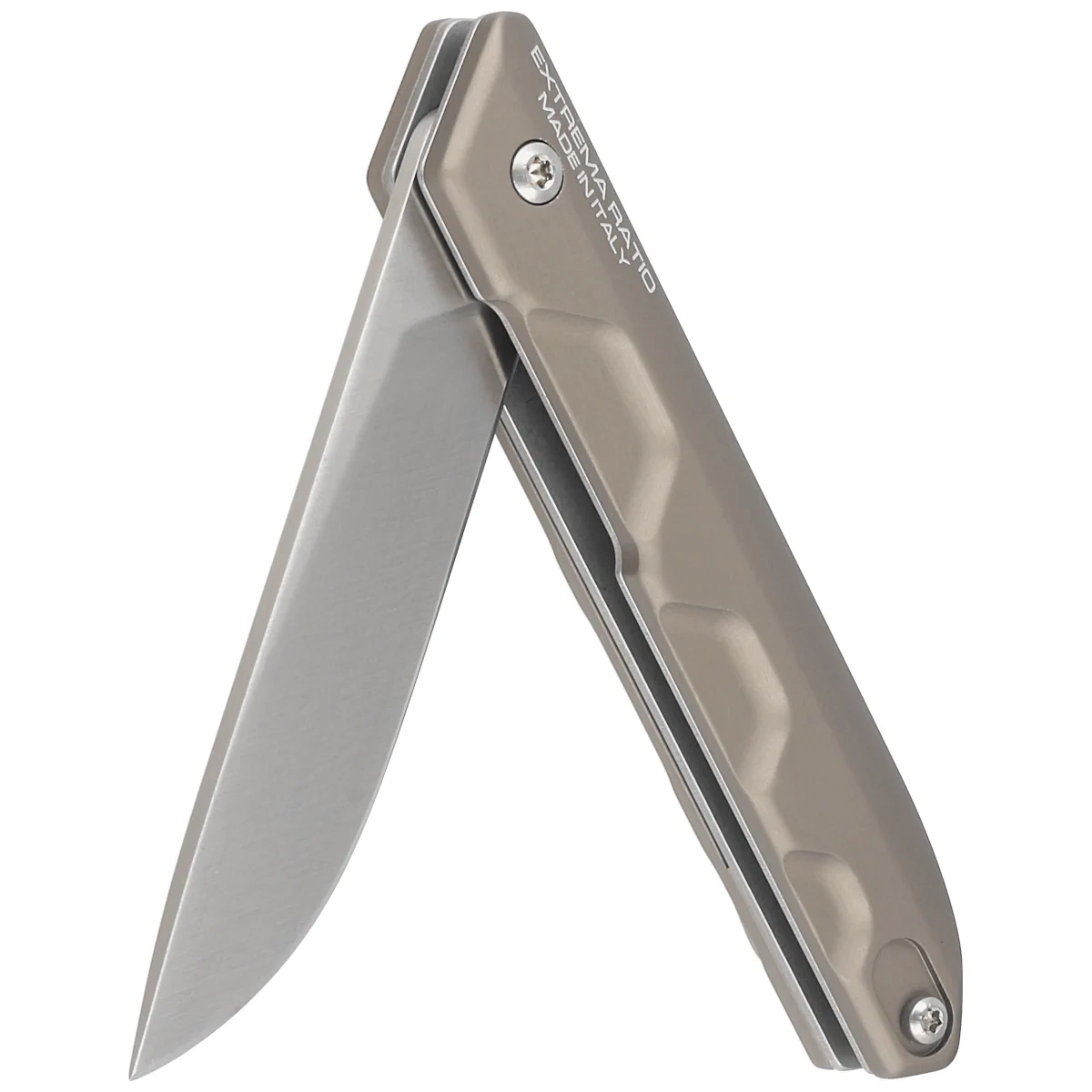 - Ferrum E Tactical Mud Aluminium, Satin mocno zbudowany nóż składany EDC firmy Extrema Ratio. Sprawdzone rozwiązania ER, profilowana rękojeść z antykorodowego aluminium, sprawdzona stal N690 na głownię noża, łożyska kulkowe dla gładkiego otwierania!