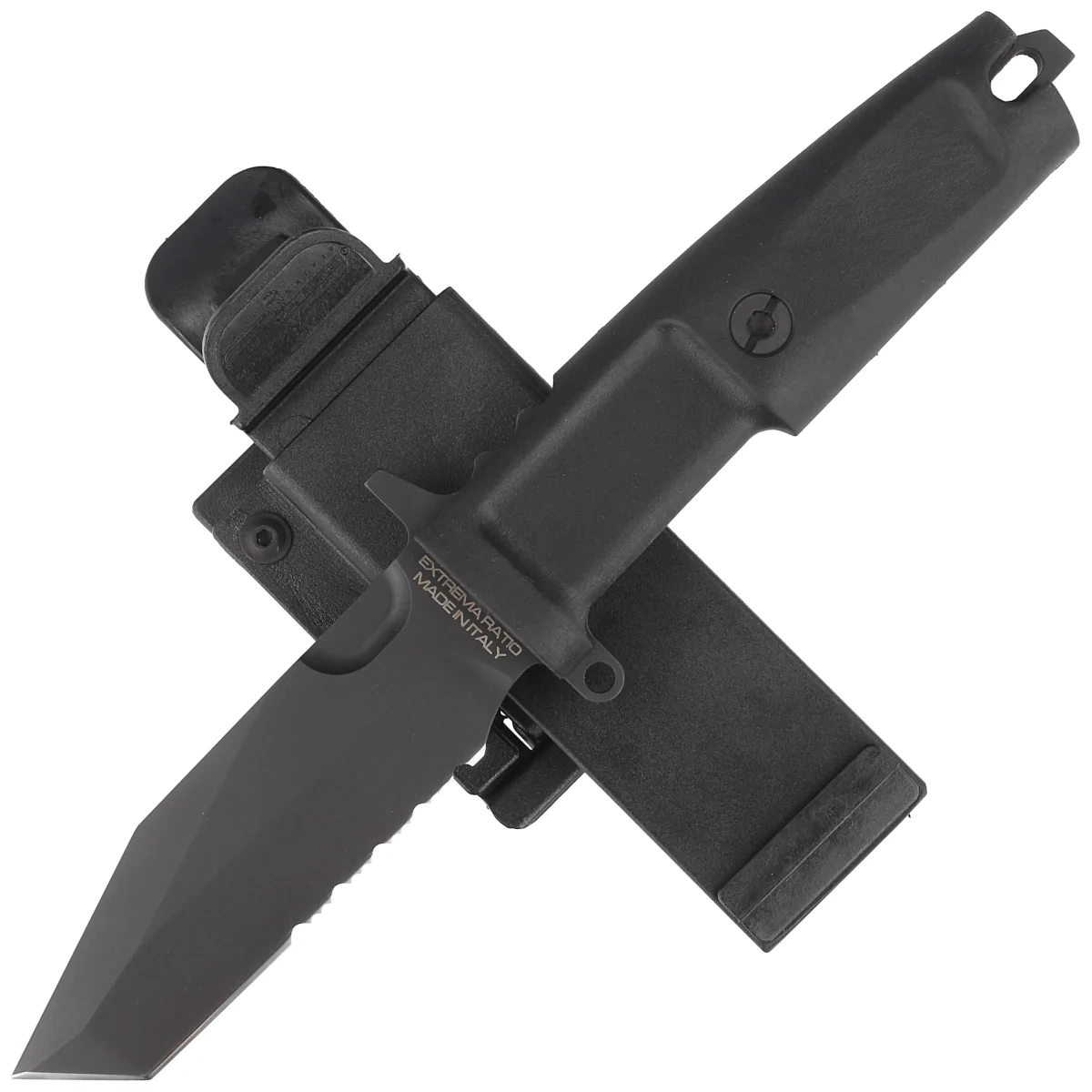 Głownia - zmodyfikowane Tanto o grubości 6.3 mm. Klingę pokryto czarną powłoką BURNISHING MIL-C-13924. Ostrze częściowo ząbkowane Combo wyprowadzono szlifem płaskim (FlatGrind). Spine jimping teksturowana rampa pod kciuk, a także double finger guard obustronny jelec / karbowana osłona chronią dłoń przed zsunięciem się na ostrze.