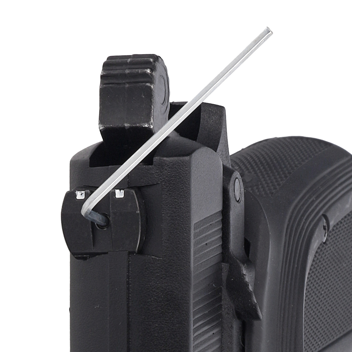 Magazynek - metalowy o pojemności 14 stalowych kulek BBs w kal. 4.5 mm. Waga amunicji rozkłada się równomiernie na całej długości magazynka. Należy używać wyłącznie śrutu stalowego BB.
