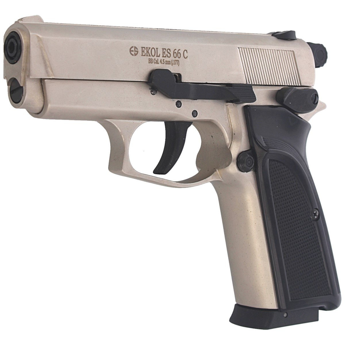 Ekol ES 66C Satin (Compact) to kompaktowy pistolet pneumatyczny o konstrukcji opartej na broni sygnałowej firmy Voltran. Oferuje realistyczny wygląd oraz solidną konstrukcję, zapewniającą trwałość i niezawodność. Zamek (slide), korpus (frame), kurek (hammer), dźwignia decockera (decocker lever) oraz drobne elementy pistoletu zostały wykonane z metalu. Dzięki tak silnym korzeniom, ta mocna wiatrówka 140 m/s nadaje się zarówno do dynamicznego strzelectwa sportowego jak i treningu taktycznego.
