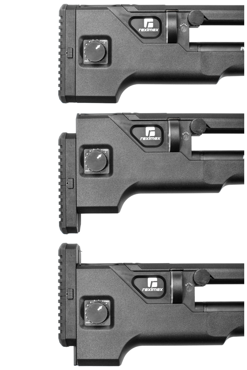 Regulator energii - za pomocą pokrętła umieszczonego obok portu magazynka możemy regulować energię wylotową śrutu w zależności od potrzeb lub dystansu na jaki strzelamy. Poziom regulacji w zakresie 10 J - 50 J (dane dla wersji FAC*).