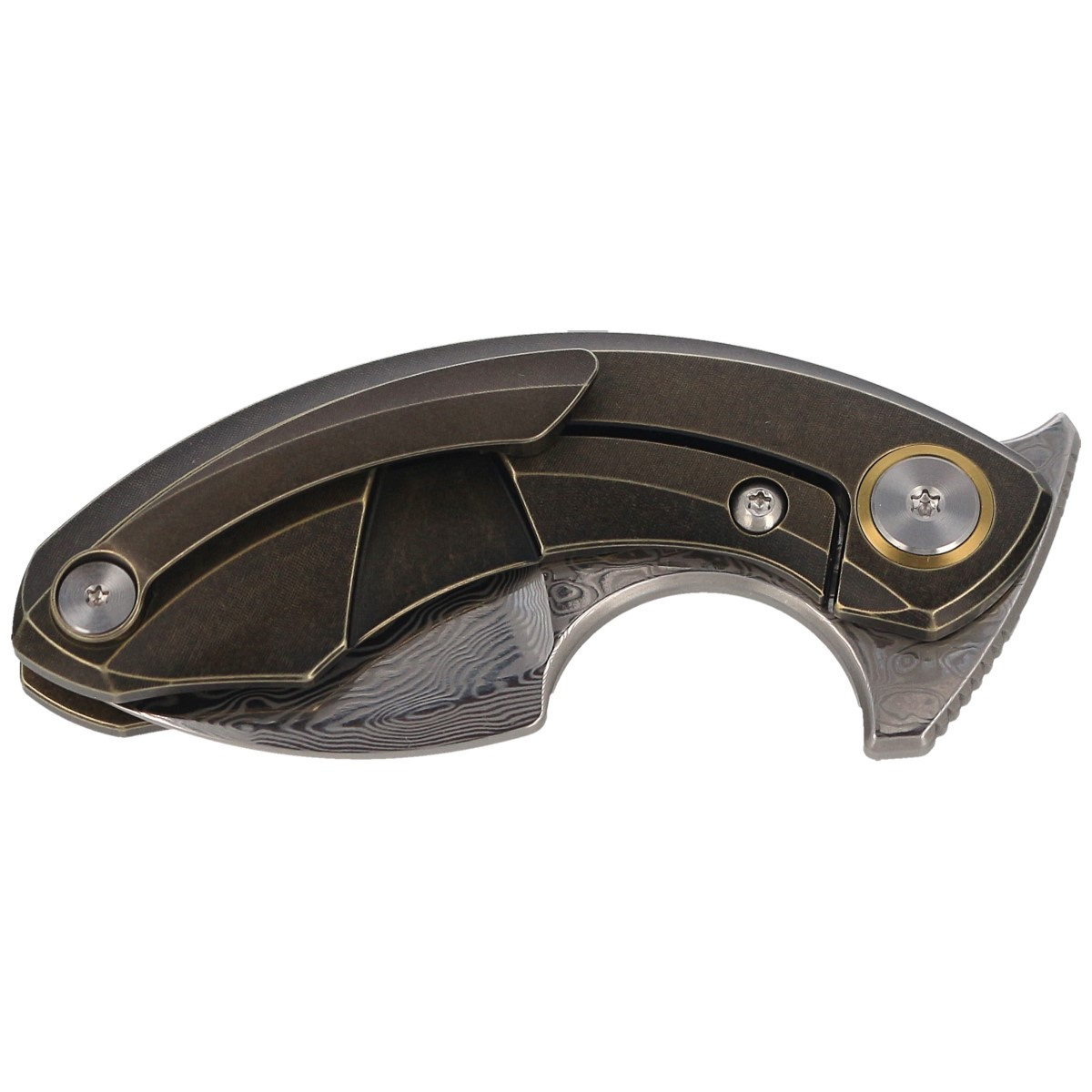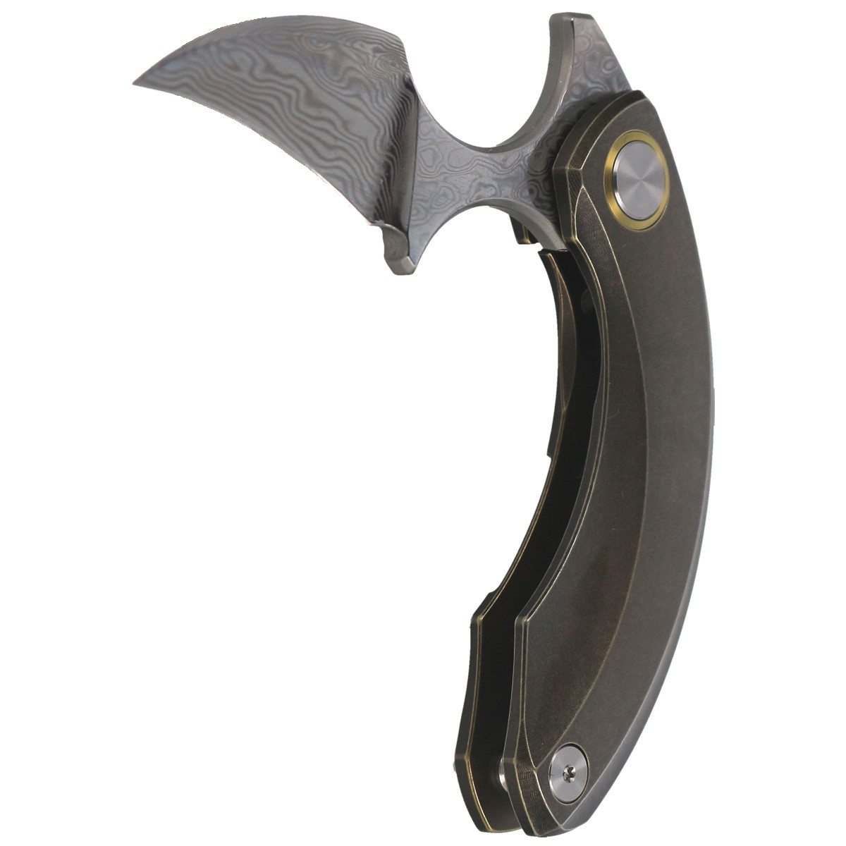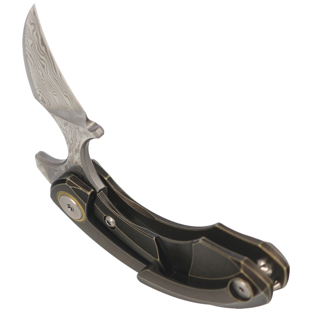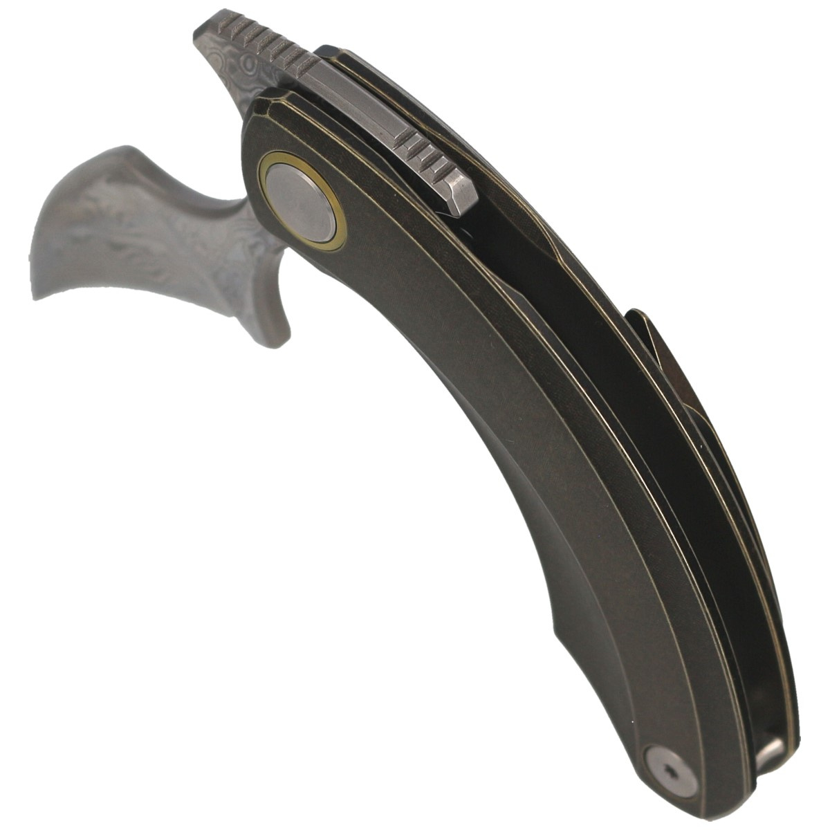 Strelit Bronze Stonewashed Titanium, Damascus niezwykły folder push dagger dla wymagających odbiorców, efekt współpracy polskiego projektanta Ostapa Hela i firmy Bestech Knives. Ergonomiczna rękojeść, stal ostrza z damastu o niepowtarzalnym wzorze!!!