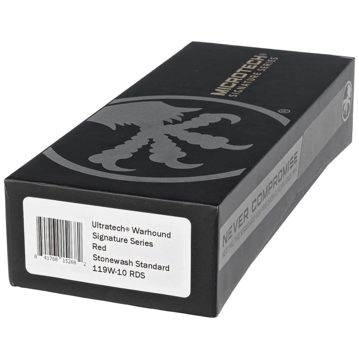 Ultratech Warhound Signature Red Aluminium, Stonewashed to pełnowymiarowy nóż automatyczny OTF (Out The Front) Ultratech z linii Signature Series. Wyposażony w piekielnie szybki mechanizm wysuwający ostre jak brzytwa ostrze. W 100% wyprodukowany i zmontowany w USA. Projekt Anthony'ego Marfione, knifemakera i właściciela Microtech Knives.