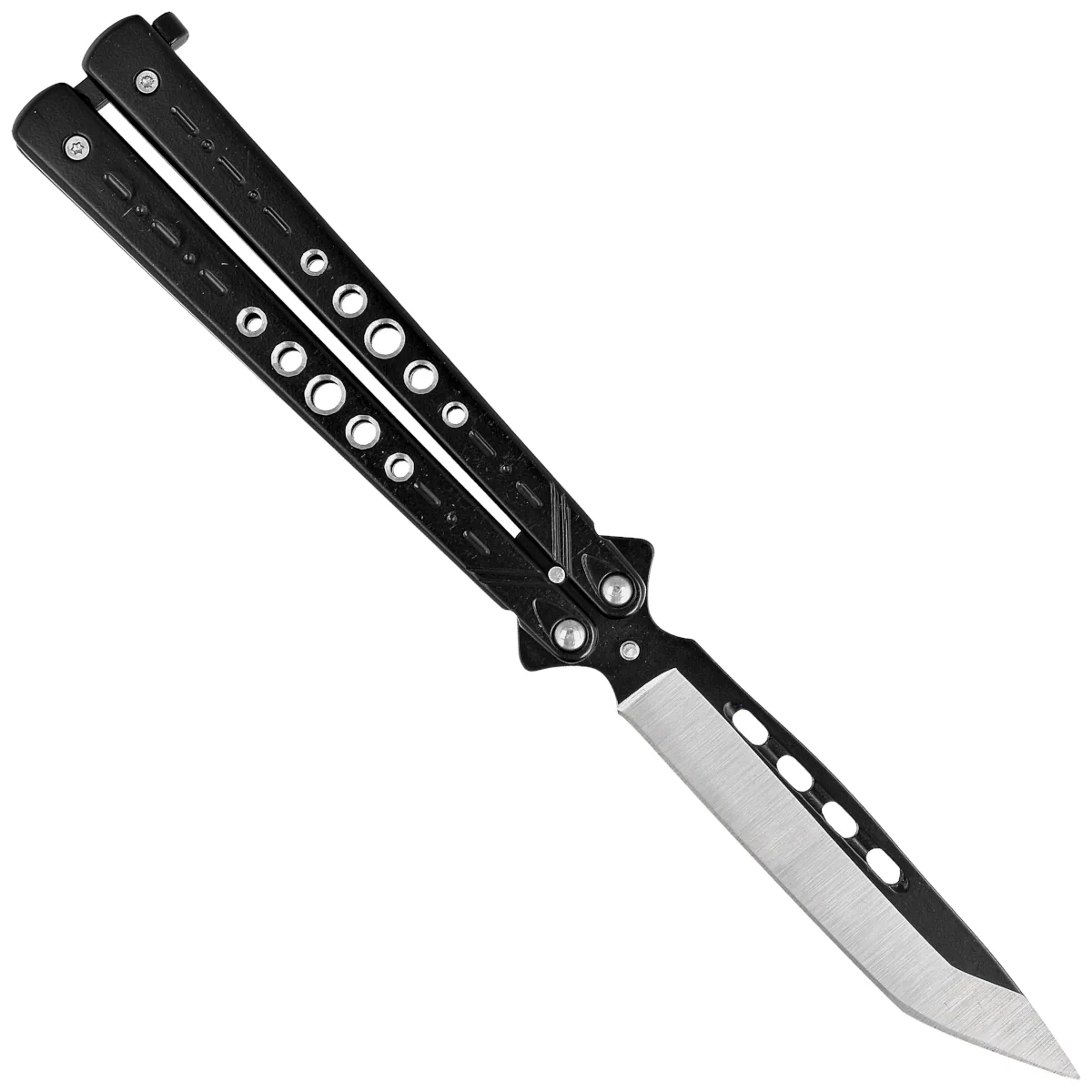 - Praktyczność: Składana konstrukcja motylka sprawia, że Balisong Black Stainless Steel, Two-Tone jest łatwy do przenoszenia i przechowywania.