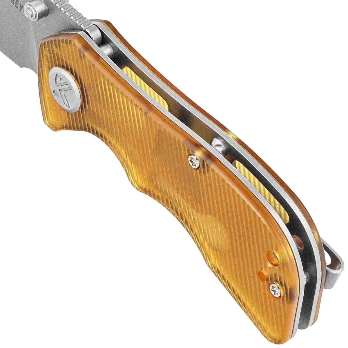 - Karaji Clear Ultem, Bead Blasted podręczny nóż składany EDC. Wszechstronna, użytkowa głownia spear point ze stali nierdzewnej 14C28N, obustronny kołek do otwierania oraz rękojeść z tworzywa ULTEM. Znakomity stosunek jakości do ceny! Bestseller!