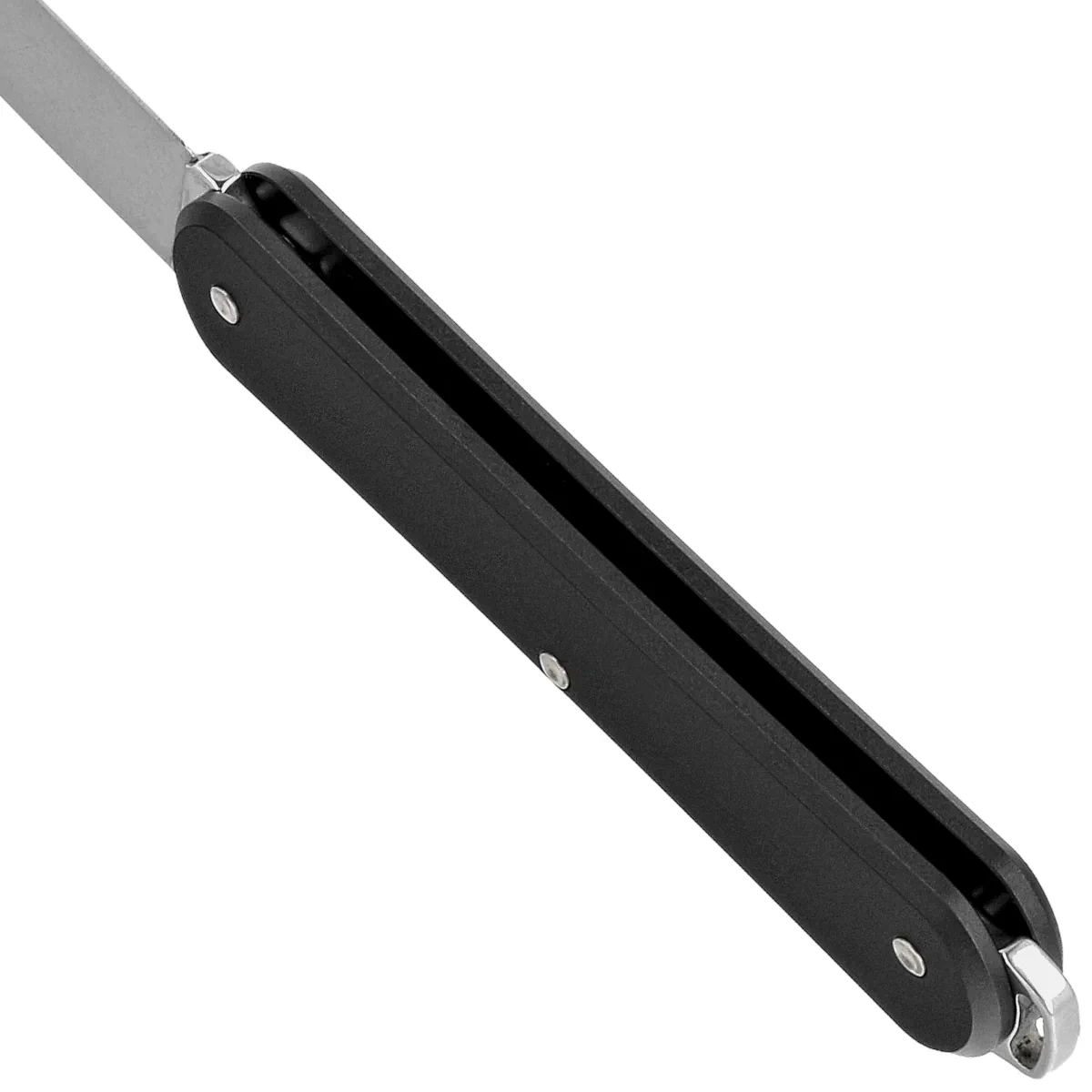 Głownia główna - o profilu Sheepsfoot, grubości 2.0 mm, wykonana z polerowanej stali nierdzewnej N690Co, hartowanej w przedziale 58-60 HRC. Nalezy tu wspomnieć, że użycie markowej stali tak wysoko hartowanej jest czymś niezwykłym, gdyż nawet renomowane firmy używają zwykle najprostszych stali nierdzewnych. Ostrze gładkie Plain wyprowadzono szlifem płaskim pełnym (Full Flat Grind), co w połączeniu z nieznaczną grubością klingi zapewnia ponadprzeciętne właściwości tnące. Ostrze otwierane za pomocą nacięcia nail nick na głowni. I tu kolejna innowacja, zamiast kłopotliwego nacięcia mamy otwór w klindze dzięki czemu otwieranie jest znacznie łatwiejsze.