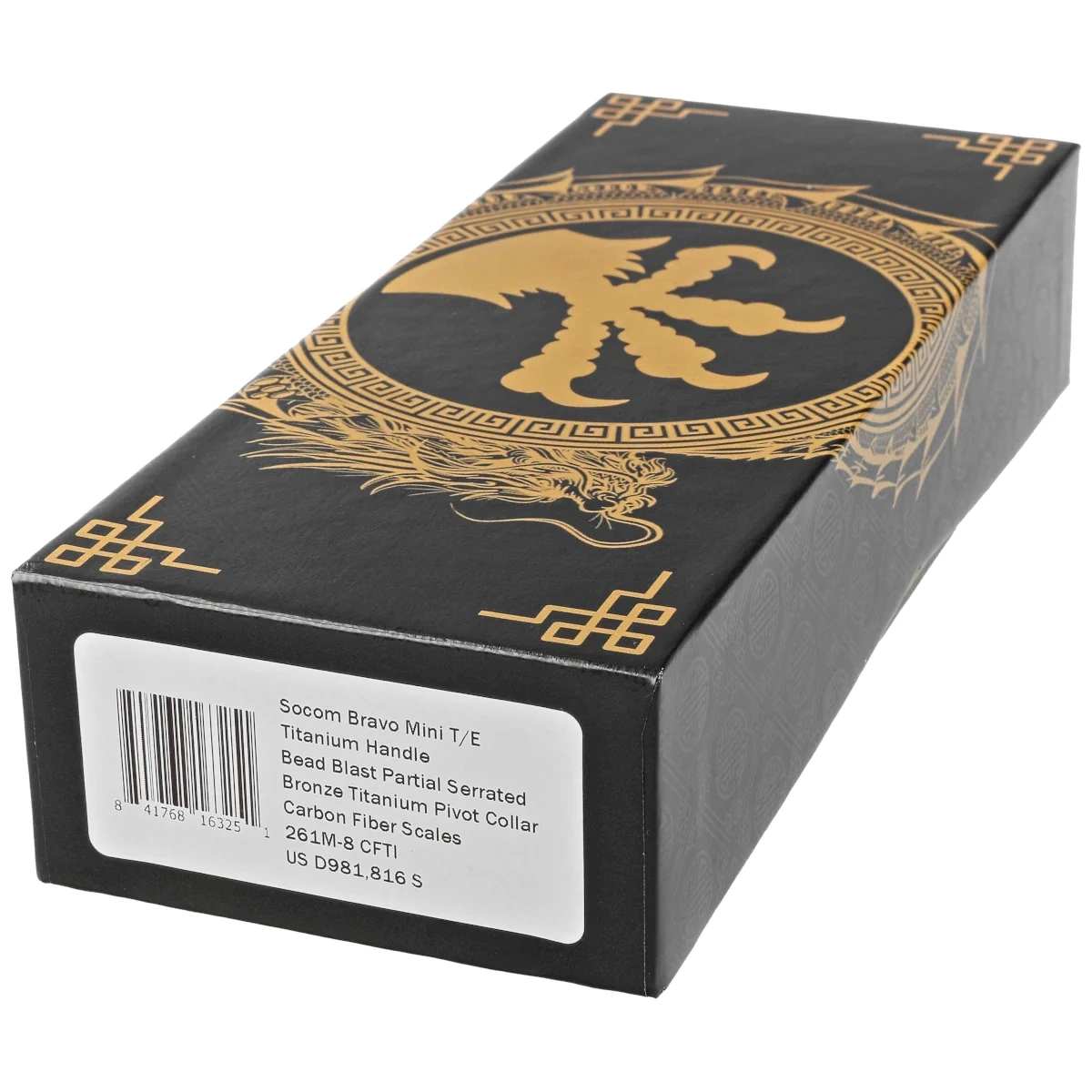 - Socom Bravo Mini T/E Titanium / Carbon Fiber, Bronze HW, Bead Blasted P/S kompaktowy nóż składany, zaprojektowany tak, aby spełniać najostrzejsze wymagania operatorów jednostek specjalnych armii USA. Najlepsze materiały, niesamowita wytrzymałość!