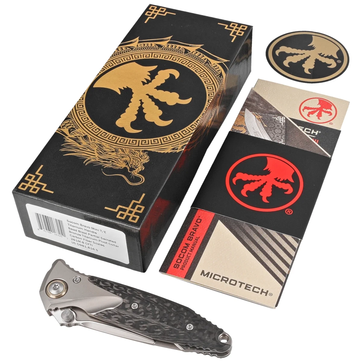 Nóż składany Microtech Socom Bravo Mini T/E Titanium/Carbon Fiber, Bronze HW, Bead Blasted P/S M390 by Tony Marfione (261M-8CFTI)