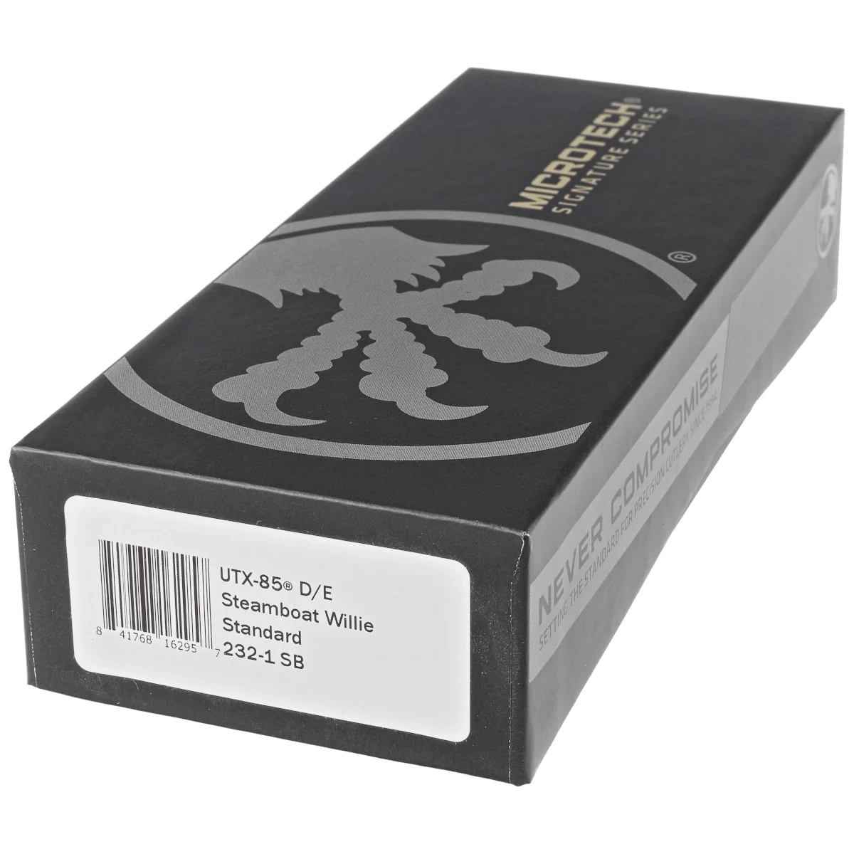 Nóż automatyczny OTF Microtech UTX-85 D/E Steamboat Willie Signature Black Aluminium, Antique White M390 (232-1SB)