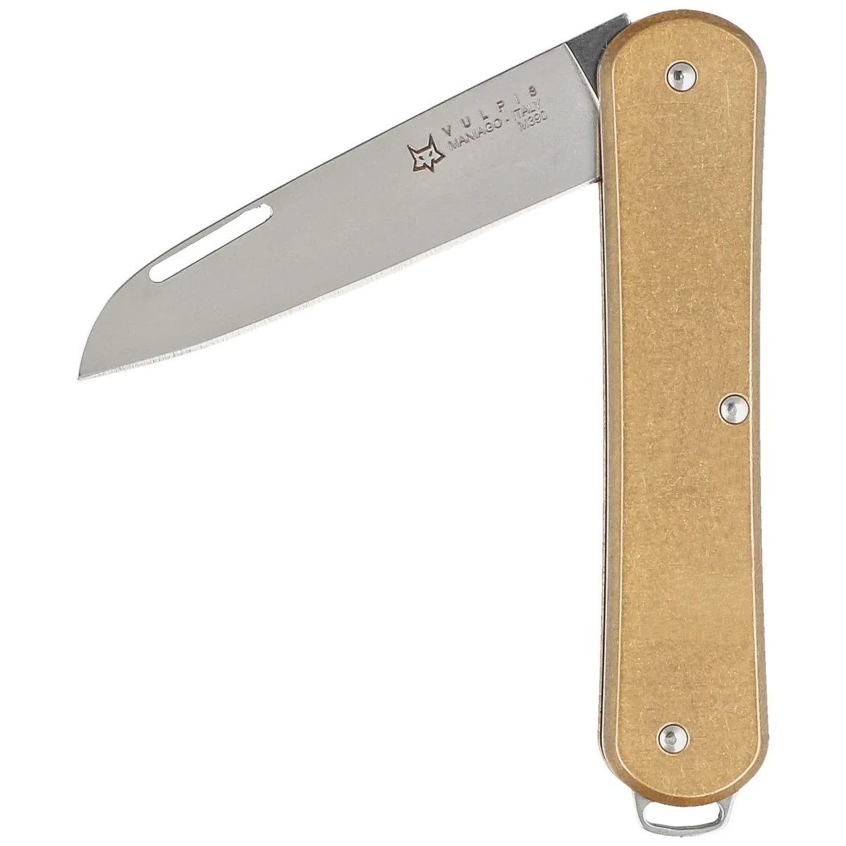 - Vulpis Brass, Polished, jeśli znudził Ci się szwajcarski design, wypróbuj włoską elegancję! Nowa seria noży Fox Knives Vulpis chce, abyś nie rezygnował z dobrej stali w nowym małym i wszechstronnym narzędziu wielofunkcyjnym!