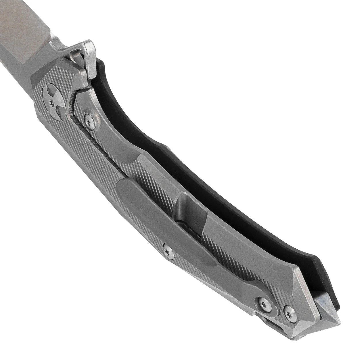Głownia - typu Sheepsfoot o łagodnie zakrzywionej krawędzi tnącej, wykończona efektowną metodą Two Tone, szlify Stonewashed, pozostała część satynowana. Niewielka grubość klingi w połączeniu z wysokim, płaskim szlifem daje doskonałą geometrię krawędzi tnącej oraz ekstremalną wydajność cięcia. Łożyska kulkowe wspomagają płynną pracę mechanizmu otwierającego klingę, którą można otworzyć za pomocą szybkiej płetwy flippera (index-finger flipper). Po otwarciu płetwa tworzy mini-gardę zapobiegającą ześlizgnięciu się dłoni na ostrze. Całość blokowana jest solidną blokadą Frame Lock.