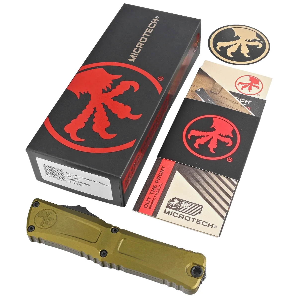 Combat Troodon OTF Line - Troodon to po grecku "raniący ząb". Chociaż nazwa ta została po raz pierwszy nadana dinozaurowi podobnemu do Raptora, nazwa ta jest równie odpowiednia dla dużego noża OTF firmy Microtech, stworzonego z myślą o wszelakich zastosowaniach oraz do walki w zwarciu. Nóż automatyczny o ponadprzeciętnej wytrzymałości, pracujący w trybie D/A (Double Action) jest ulubionym OTFem wśród funkcjonariuszy organów ścigania, sił zbrojnych Stanów Zjednoczonych i personelu służb ratowniczych. Jego solidna konstrukcja sprawia, że Combat Troodon® nadaje się do intensywnego użytkowania, a zalety automatu Out The Front powodują, że jest również doskonałym nożem do codziennego noszenia.