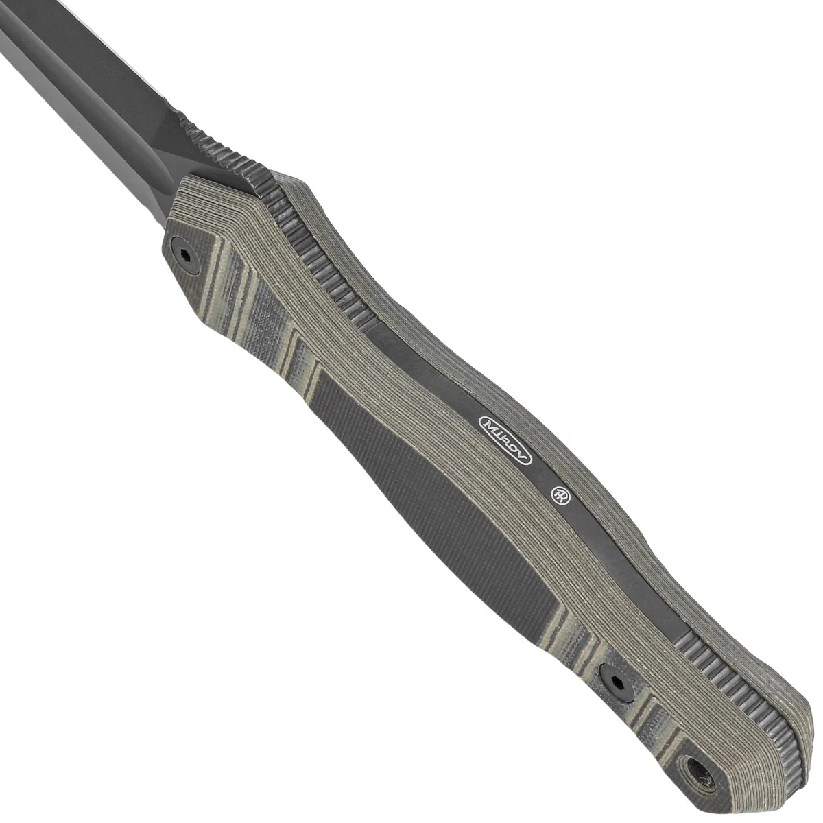 Rękojeść - profilowana z podcięciami pod palce. Okładziny z tworzywa G10 mocowanego bezpośrednio do blanka. Jest to najprostsza i najpewniejsza konstrukcja zapewniająca praktyczną niezniszczalność noża. Zaletą G10 jest niezwykła wytrzymałość materiału połączona z prawie kompletną niewrażliwością na warunki atmosferyczne. Rękojeść pokryta z przodu i z tyłu nacięciami (jimpingiem) który wzmacnia pewność chwytu i kontrolę nad nożem podczas pracy.