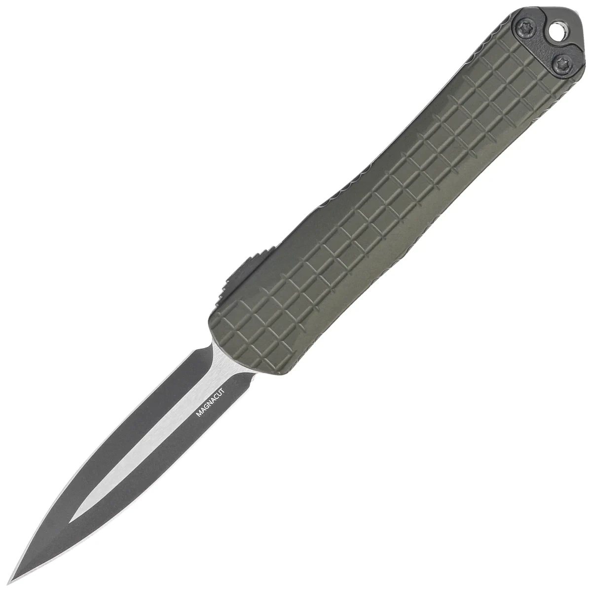 - Manticore S D/E Green Frag Aluminium, Black/Satin kompaktowy i ultralekki nóż automatyczny OTF. Wyposażony w piekielnie szybki mechanizm wysuwający ostrze pracujący w trybie D/A. Głownia z najlepszej stali MagnaCut. Projekt Tony Marfione Jr.