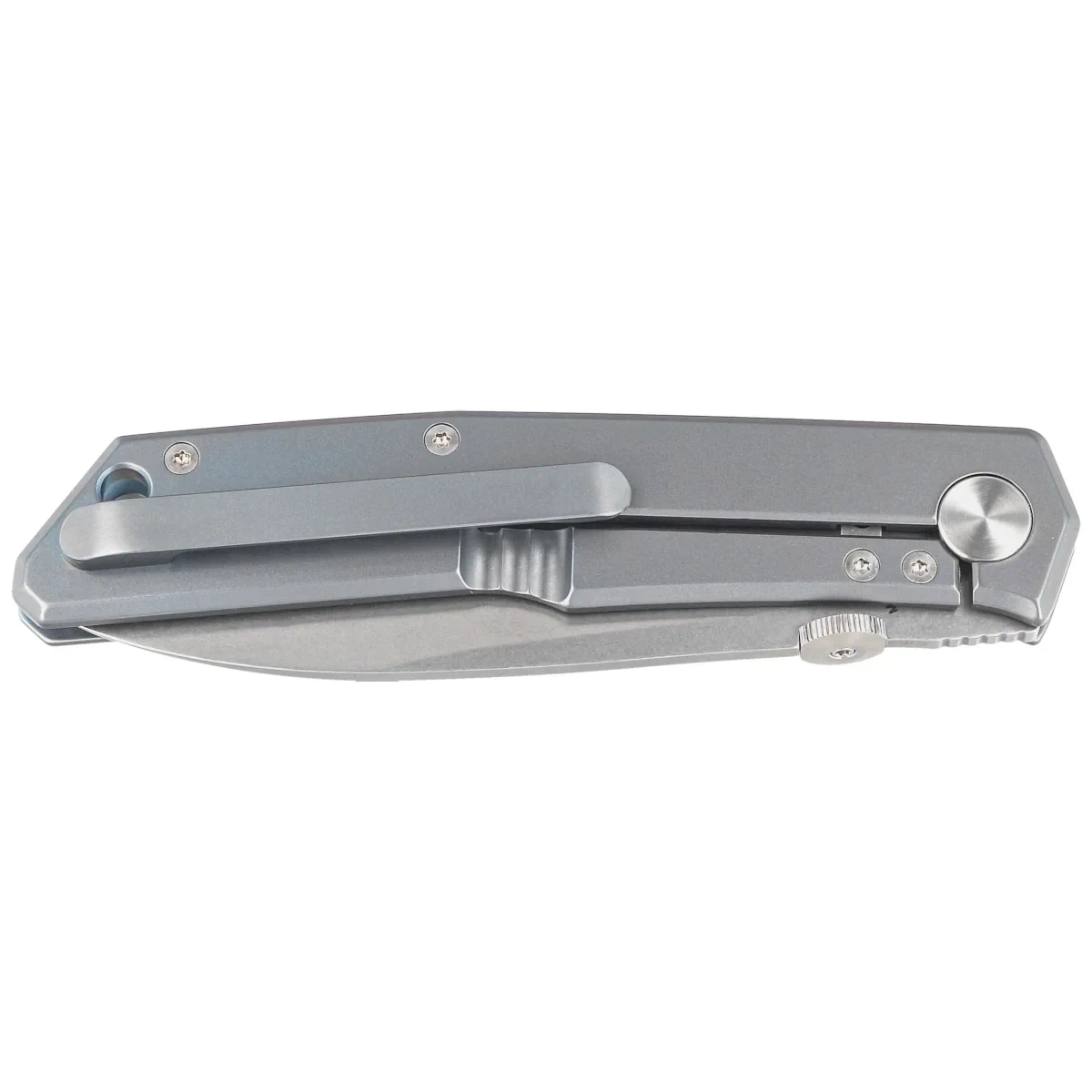Rękojeść - fazowane okładziny z tytanu, lekko profilowane. Otwarta konstrukcja tzw. open-backed mocowana do siebie stalowymi tulejami dystansowymi zmniejsza wagę oraz ułatwia czyszczenie. Prosta, solidna konstrukcja daje pewność wieloletniego użytkowania. W tylnej części znajduje się lanyard hole, czyli miejsce na linkę zabezpieczającą lub ozdobną. Jednopozycyjny (prawa) tytanowy klips pozwala przenosić dyskretnie nóż w kieszeni w pozycji tip-up (czubkiem ostrza do góry).