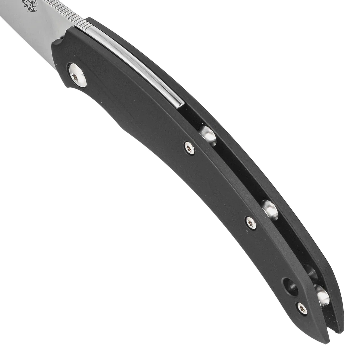 Slim Dragontac ‘‘Piemontes’’ Black FRN, Satin to friction folder zaprojektowany przez Bastiena Covesa z Bastinelli Creations. To niezwykłe narzędzie łączy w sobie prostotę konstrukcji z wyjątkową funkcjonalnością i sprawdzonymi materiałami. Ostrze wykonane z popularnej stali Böhler N690Co. Rękojeść wykonana z FRN (Fiberglass Reinforced Nylon), lekkiego i wyjątkowo trwałego kompozytu. Slim Dragontac "Piemontes"to nie tylko narzędzie, ale również wyraz rzemieślniczej precyzji. Każdy detal, każde wykończenie jest starannie dopracowane przez mistrzów rzemiosła, co gwarantuje nie tylko doskonałą jakość, ale także unikalność każdego egzemplarza. Friction folder nie posiada blokady jako takiej, jest więc dozwolony we wszystkich krajach gdzie noszenie blokowanych noży jest zakazane. Jeśli szukasz eleganckiego, funkcjonalnego noża do kolekcji, Slim Dragontac ‘‘Piemontes’’ jest doskonałym wyborem. Jego wyjątkowy design, wysoka jakość wykonania i funkcjonalność sprawią, że stanie się on nieodłącznym elementem Twojego wyposażenia. To połączenie piękna i funkcjonalności, które z pewnością doceni każdy miłośnik noży.