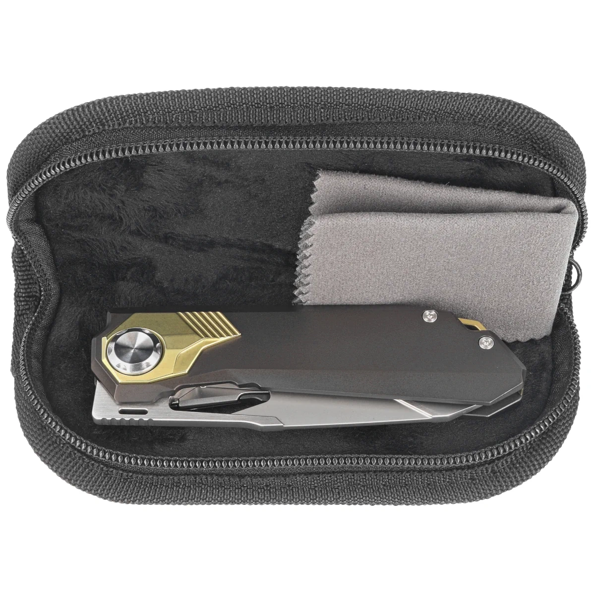 Nóż składany Remette RT-Peregrine Falcon Brown/Gold Titanium, Hand Grinding Pearlescent M390 (RTT1-B)