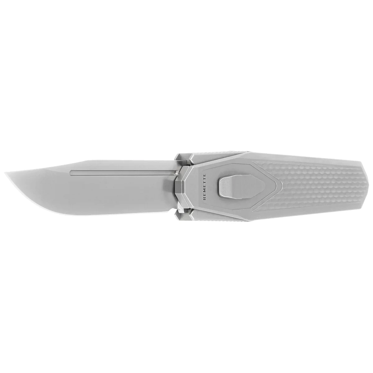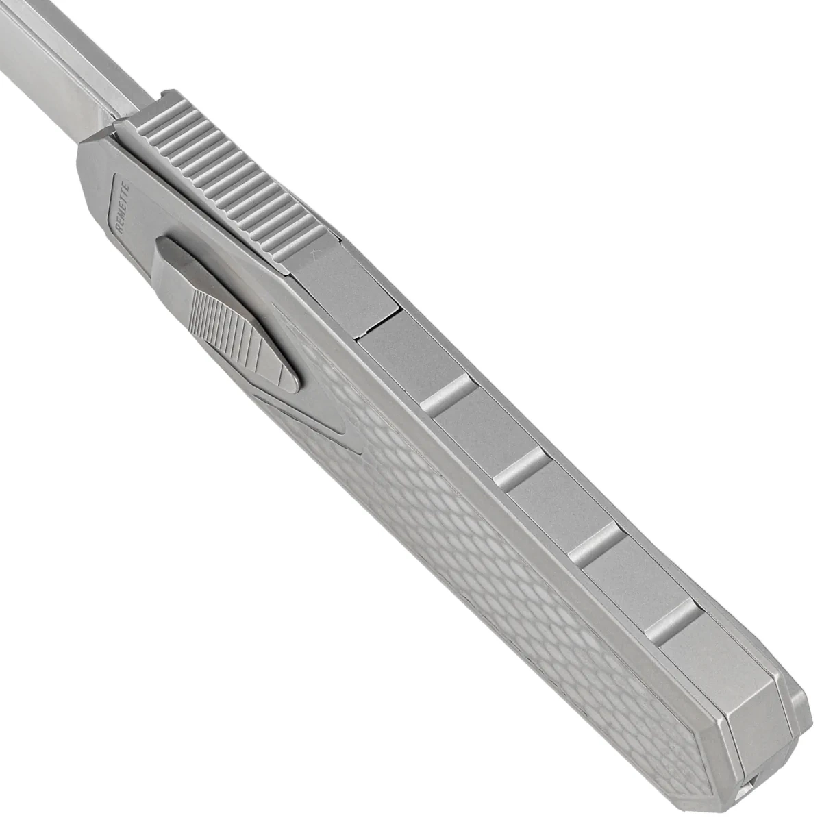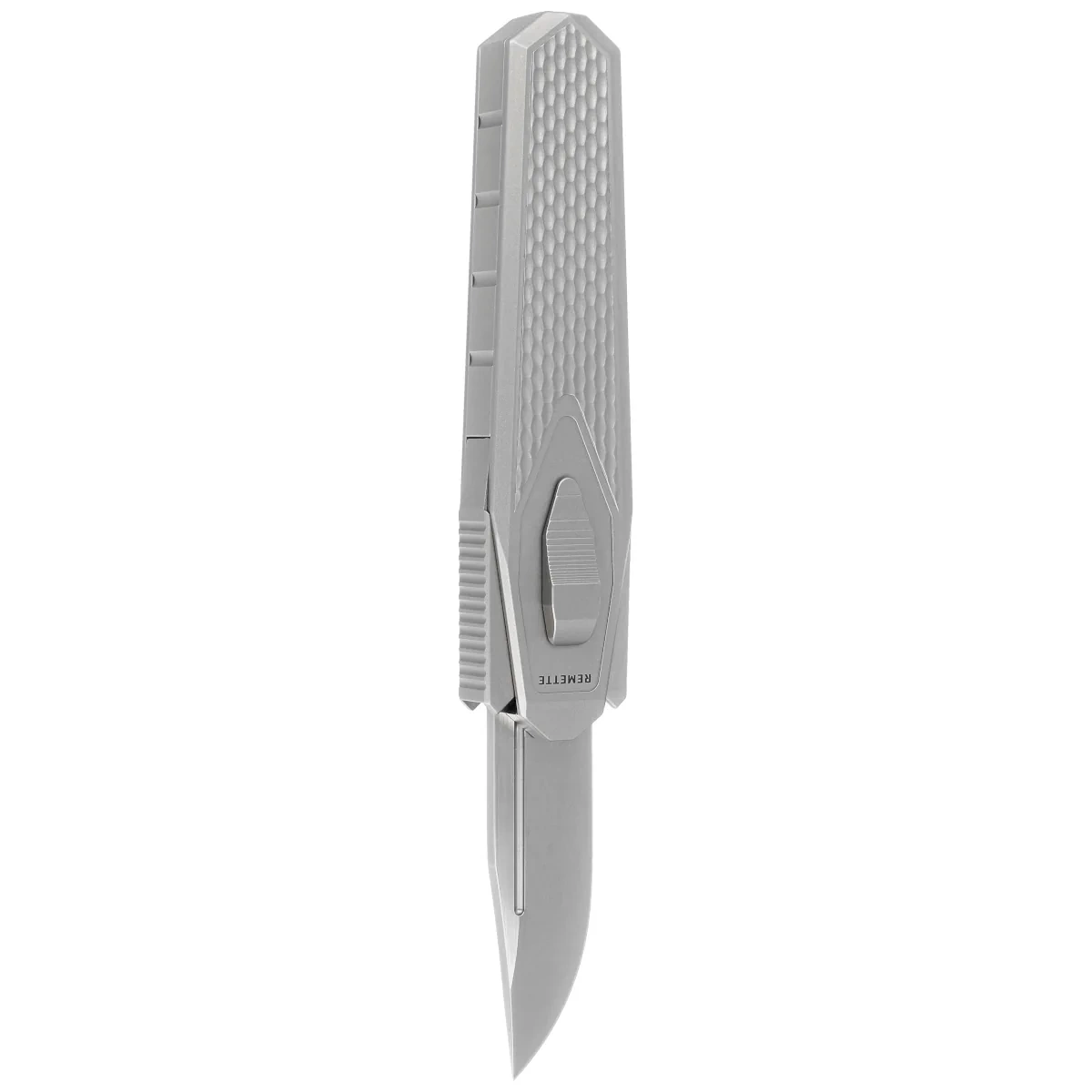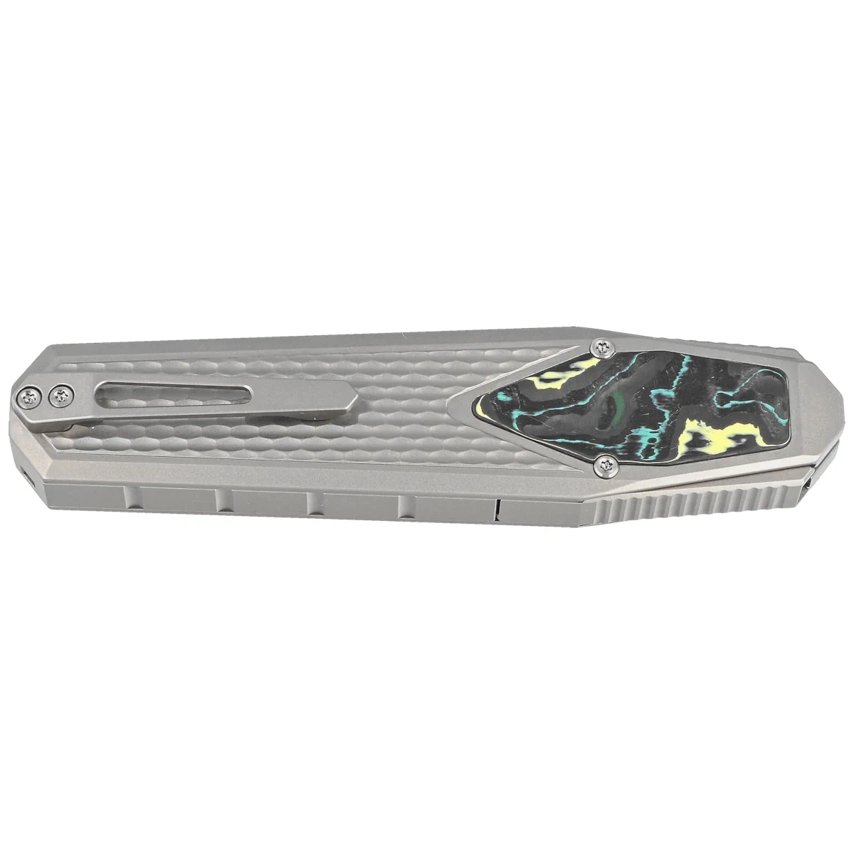- Swordfish Titanium / Yellow Green Carbon Fiber, Pearlescent. Innowacyjny nóż z młodej manufaktury Remette Knives. OTF z wysuwanym dzięki sile grawitacji ostrzem ze stali Böhler M390. Rękojeść z tytanu z nowatorskim systemem uwalniania ostrza.