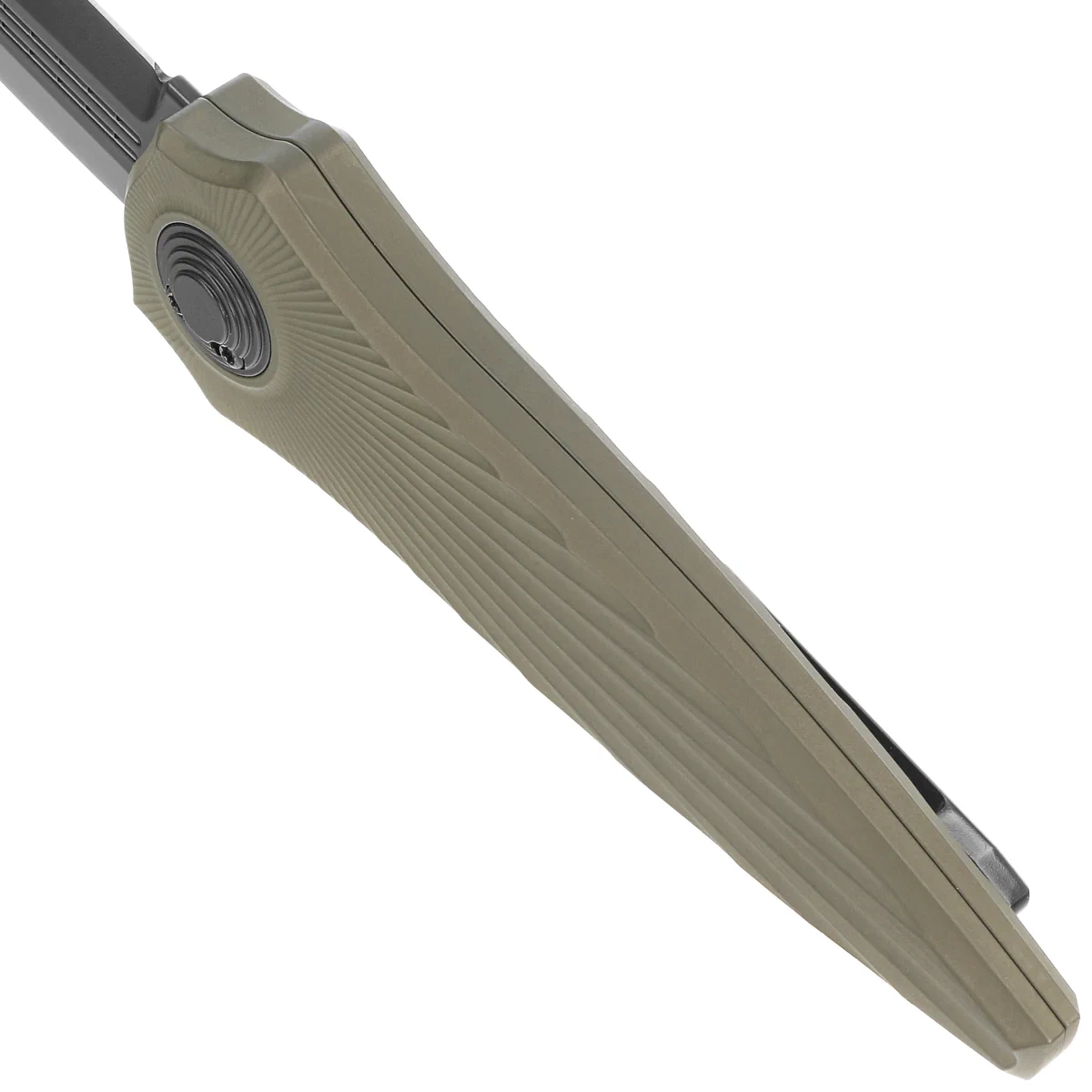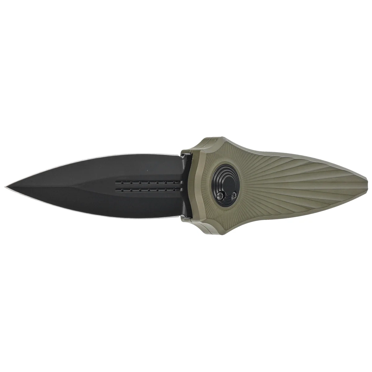 • Warlock-X Tapered StarBurst OD Green Aluminium, Cerakote Black, duży nóż składany z nietypowym sposobem otwierania grawitacyjnego. Okładziny z aluminium, głownia ze sprawdzonej stali S35VN. Wykonany z dumą przez amerykańskich rzemieślników!