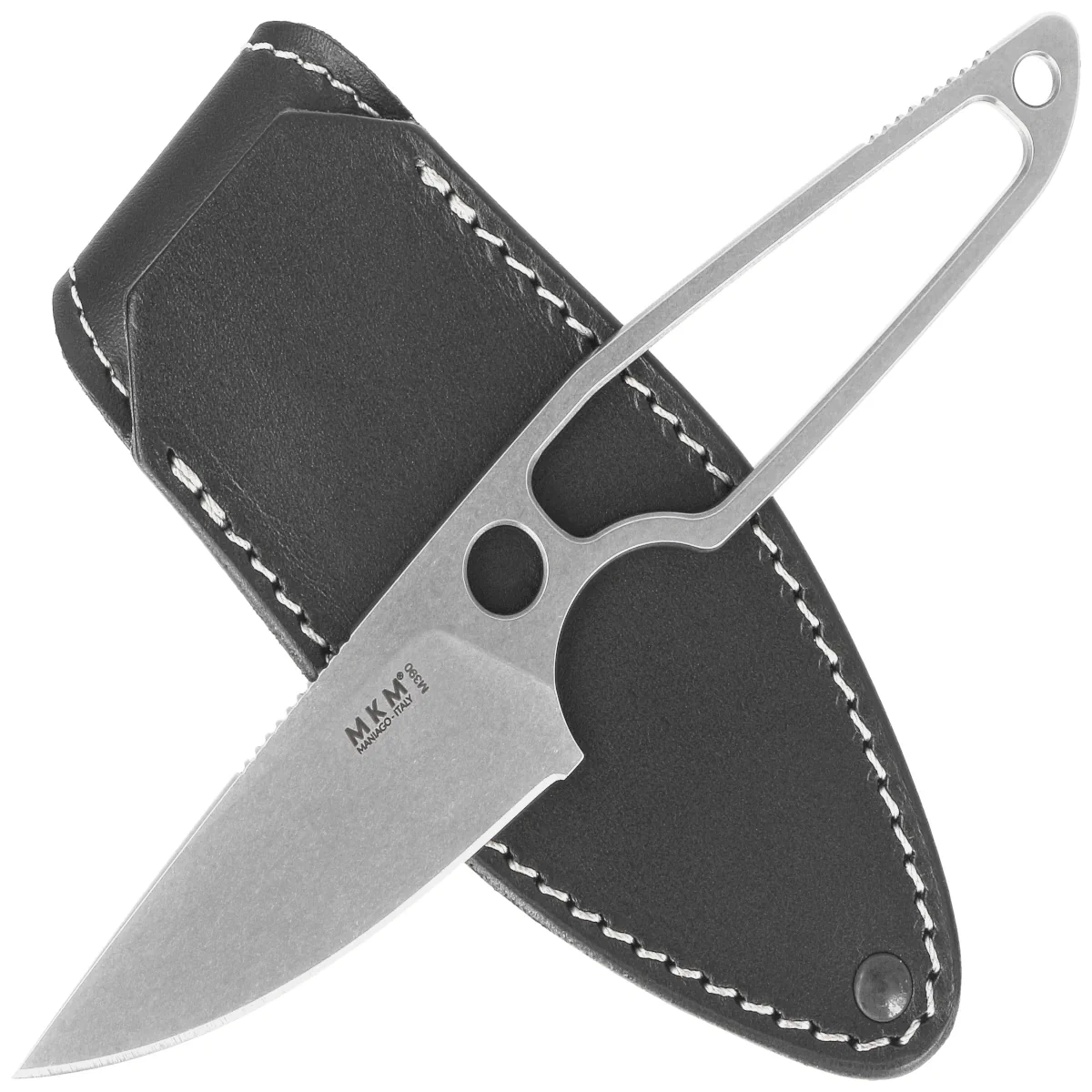 Makro 1 Naked/Skeletonized, Stonewashed, design by Jesper Voxnæs. Wykonany z jednego kawałka doskonałej stali narzędziowej Böhler M390, lekki (tylko 47g!) nóż mogący służyć zarówno jako miejskie EDC, jak i podręczny nóż w teren włoskiej marki MKM. Lekka rękojeść bez okładzin i ostra jak brzytwa, krótka mocna klinga z zaokrągloną krawędzią tnącą.