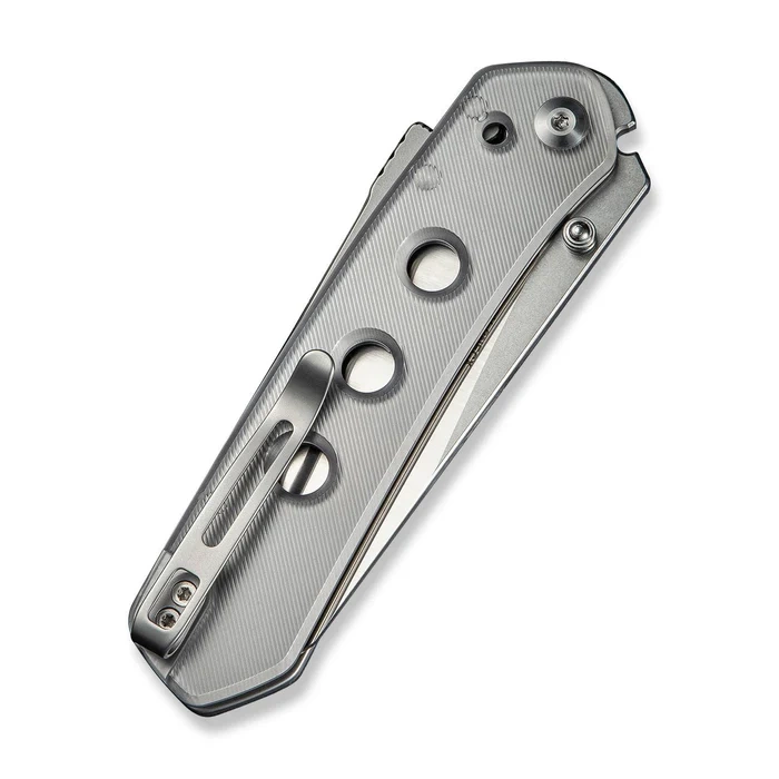 Rękojeść - fazowane okładziny z polerowanego, przezroczystego tworzywa Lexan™, mocowane do linersów ze stali nierdzewnej. Prostota i solidność konstrukcji dają pewność wieloletniego użytkowania. Rękojeść została odciążona serią otworów w centrum okładzin. Klips dwupozycyjny (prawa/lewa) umożliwia przenoszenie noża w pozycji tip-up. W tylnej części znajduje się otwór do przewleczenia linki zabezpieczającej lub ozdobnej. Podobnie jak w innych modelach, oś pivota ozdobiona jest stylizowanym logiem producenta.