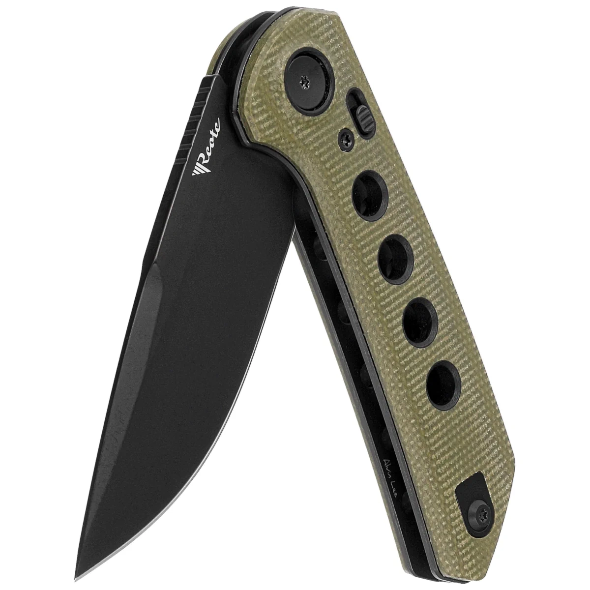 Nóż składany Reate PL-XF-4 Green Micarta/Black G10 Inlay, Black PVD Nitro-V