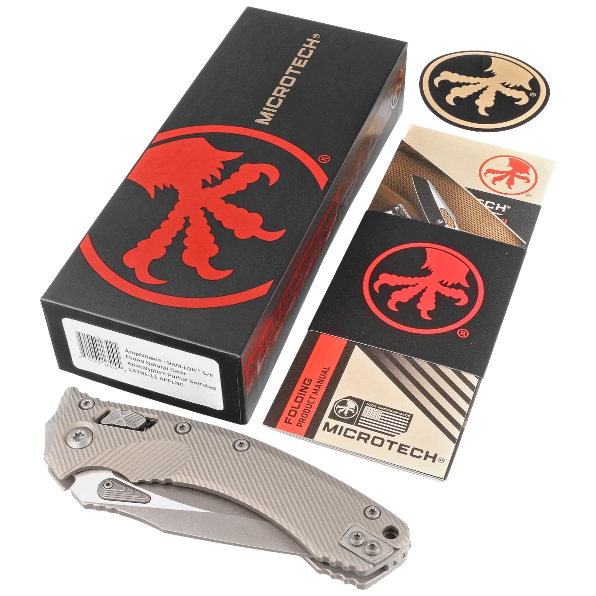 - Amphibian Ram-Lok Fluted Natural Clear Aluminium, Apocalyptic P/S reedycja noża składanego z intuicyjną blokadą RAM-Lock. Doskonała stal ostrza M390MK, efekt współpracy inżynierów firm Microtech i Bohler. Ergonomiczna rękojeść. Projekt Anthony Marfione!