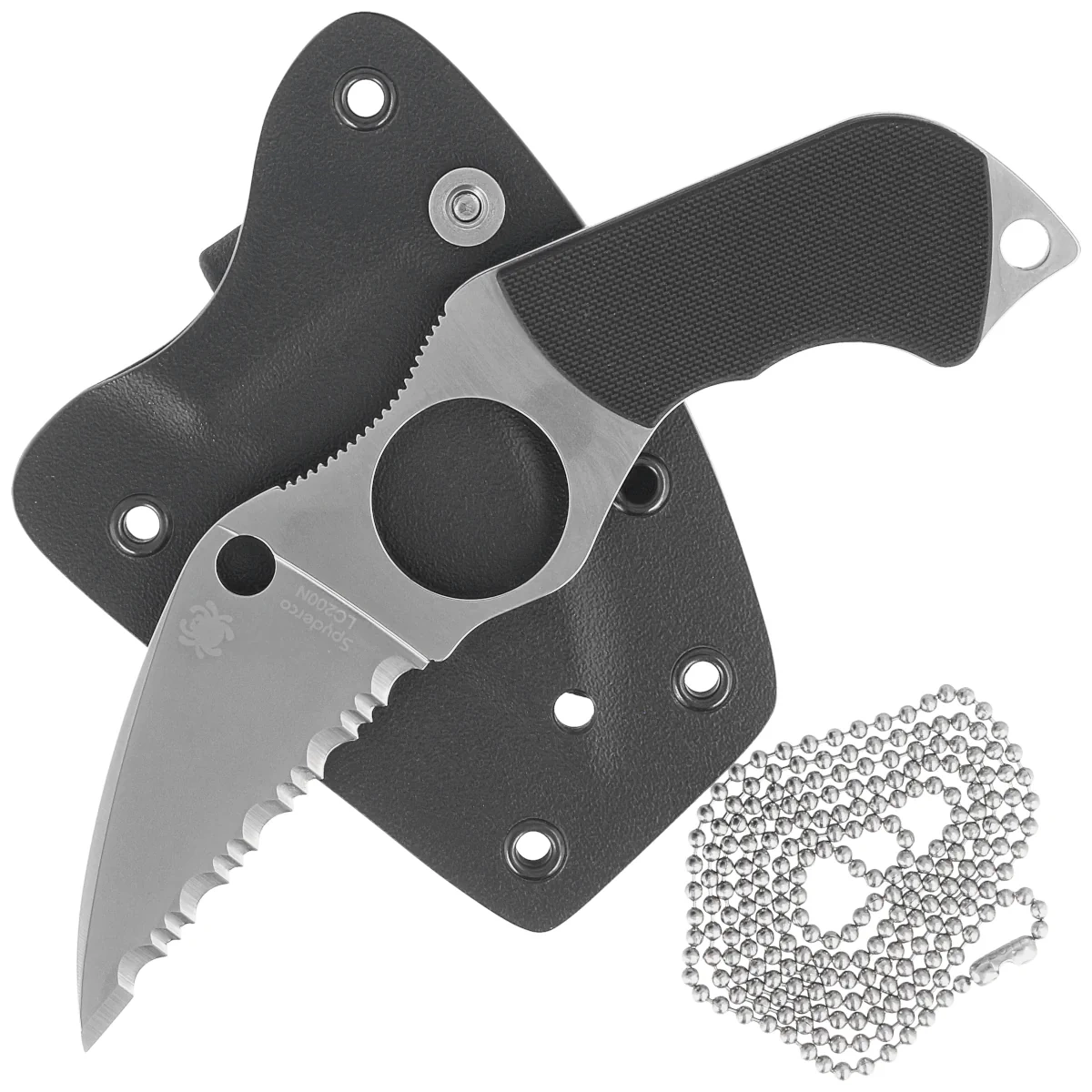 Spyderco Swick 6 Small Black G10, Satin kompaktowy nóż z pochwą przystosowaną do zawieszania na szyi, który łączy w sobie natychmiastową gotowość do samoobrony z wygodą codziennego noszenia. Zaprojektowany przez założyciela Spyderco, Sala Glessera, który czerpał inspirację z innowacyjnych projektów francuskiego knifemakera Freda Perrina. Posiada pełnowymiarową rękojeść w stylu pistoletowym i dostosowany do mniejszej dłoni, otwór o średnicy 23,1 mm, który zapewnia pełną kontrolę nad narzędziem. Dzięki przemyślanej konstrukcji Swick 6 Small jest niezawodnym narzędziem zarówno do codziennego użytku, jak i w sytuacjach wymagających pewnego chwytu i precyzyjnego cięcia.
