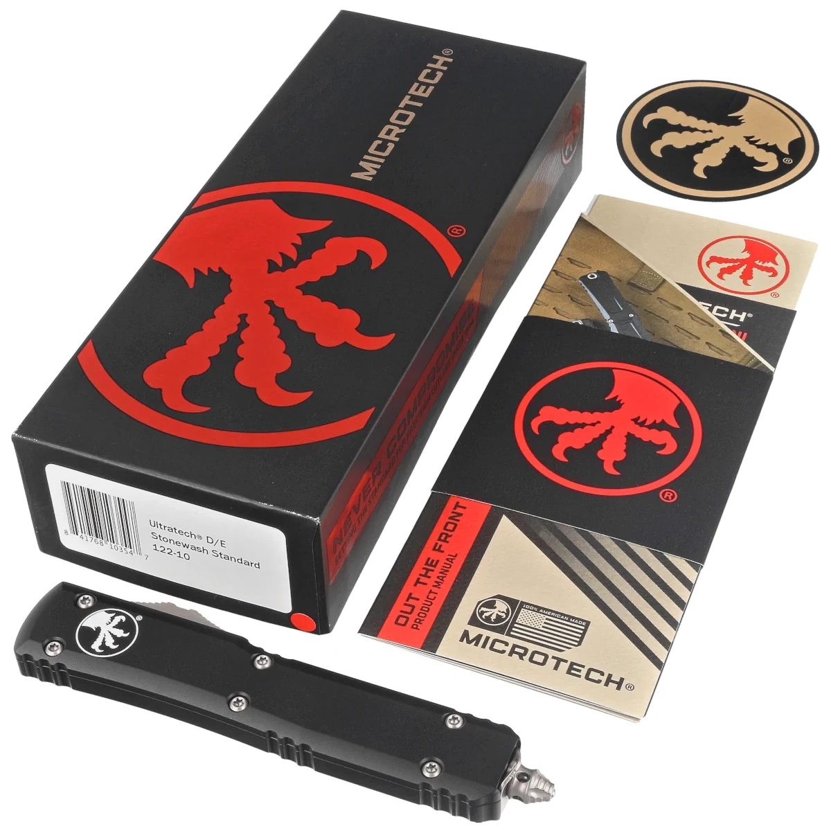 - Ultratech D/E Black Aluminium, Stonewashed to pełnowymiarowy nóż automatyczny OTF z serii Ultratech. Pracujący w trybie D/A, głownia ze stali Böhler M390, precyzyjnie wykonana rękojeść z aluminium. Projekt Tony Marfione właściciela Microtech Knives