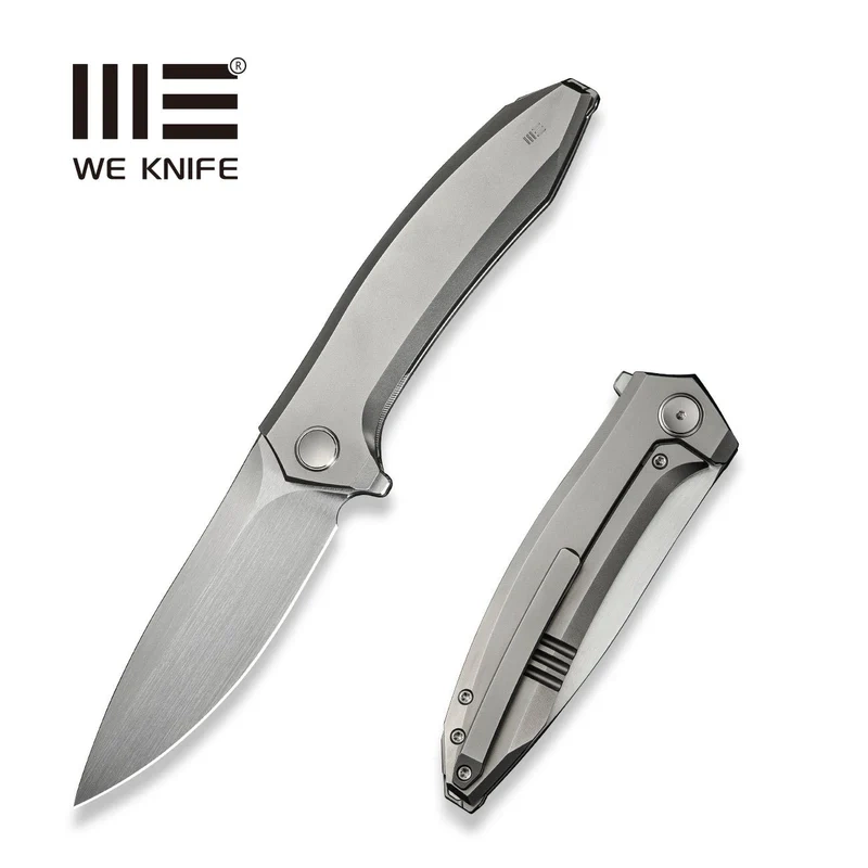 - Acuminal Gray Titanium, Hand Rubbed Satin duży folder EDC marki WeKnife. Ergonomiczna rękojeść z tytanu dla wygodnego chwytu, doskonałe ostrze ze stali Vanax. Otwierany szybką płetwą flippera, ceramiczne łożyska gwarantują płynną pracę mechanizmu.