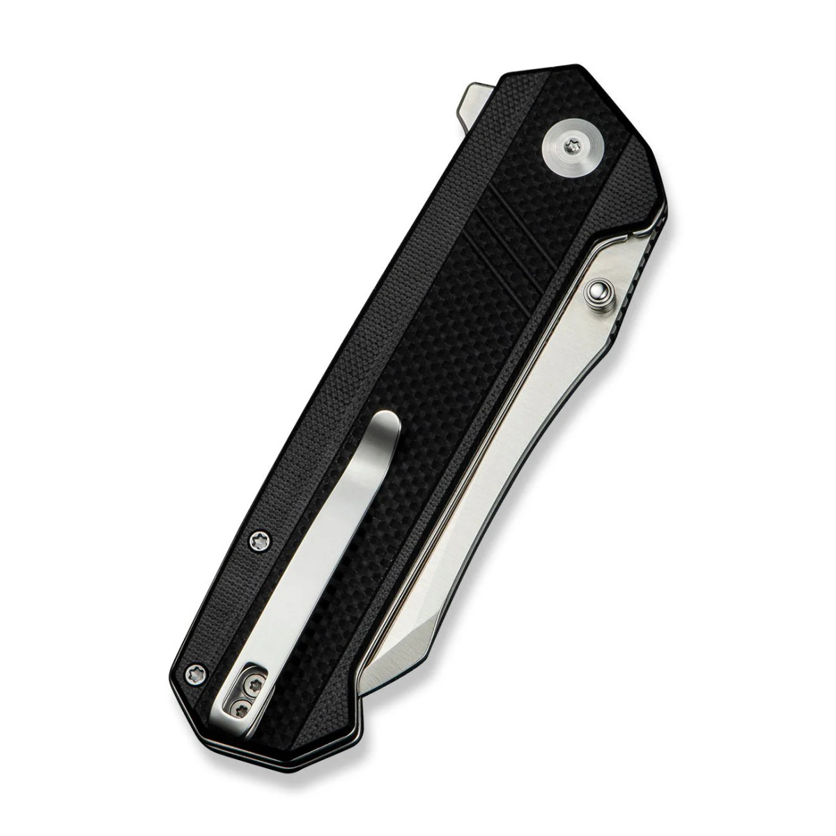 Rękojeść - wykonana z kompozytu G10, praktycznie niezniszczalnego tworzywa, niewrażliwego na warunki atmosferyczne, odpornego na chemikalia i uszkodzenia mechaniczne. Fazowane krawędzie okładek eliminują ostre krawędzie dla wygody, uchwytu. Otwarta konstrukcja tzw. open-backed mocowana stalowymi tulejami dystansowymi redukuję wagę oraz ułatwia czyszczenie. Wykonane z przodu podcięcie na palec (fore finger groove) poprawia pewność uchwytu. Dwupozycyjny, prawo/lewostronny klips deep carry pozwala przenosić dyskretnie nóż w kieszeni w pozycji tip-up (czubkiem ostrza ku górze).