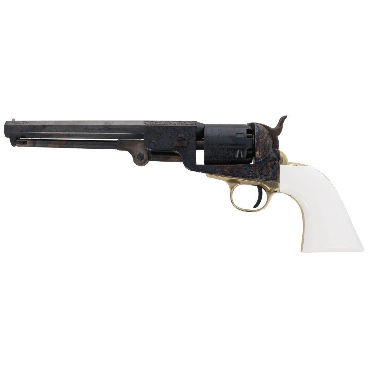 1851 Colt Navy Yank Polymer Grip .36, kunsztownie wykonana wersja rewolweru Colt w kalibrze .36. Wyjątkowa broń, symbol Dzikiego Zachodu z podkreślającymi piękno wykonania detalami: mosiężną osłoną spustu oraz hartowanym ogniowo kurkiem. Cylinder bębna z wygrawerowaną sceną zwycięstwa II Texas Navy w bitwie morskiej pod Campeche w roku 1843. Biała rękojeść z polimeru imitującego kość słoniową.