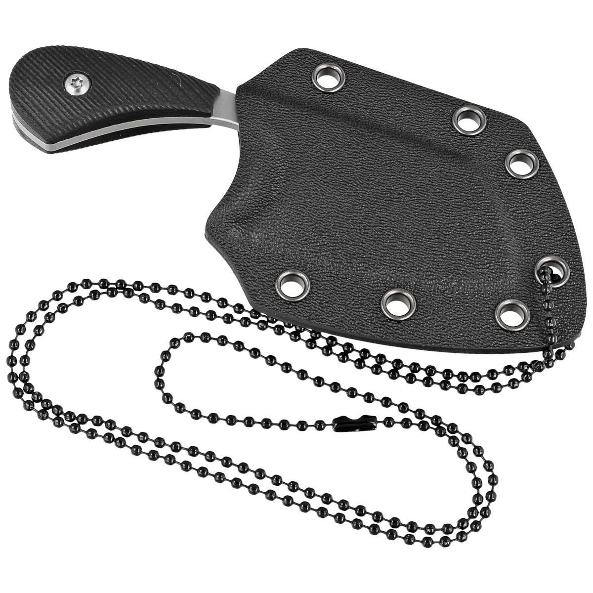 - Ratatosk CL Black G10, Satin, niezwykle lekki nóż o stałej głowni, typu neck. Głownia ze stali nierdzewnej Sandvik 14C28N zapewniającej dobre trzymanie ostrości. Rękojeść z kompozytu G10. Płaska pochwa z kydexu z łańcuszkiem do noszenia na szyi.