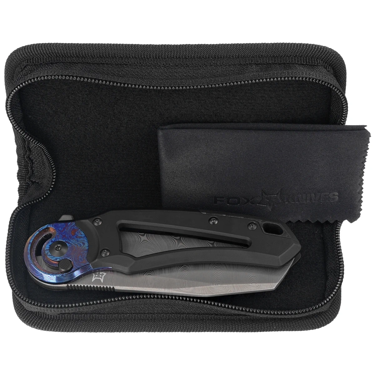 Nóż składany Fox Metamorphosis Black PVD Titanium, Timascus HW, Damasteel Super Dense Twist (FX-556-A1)