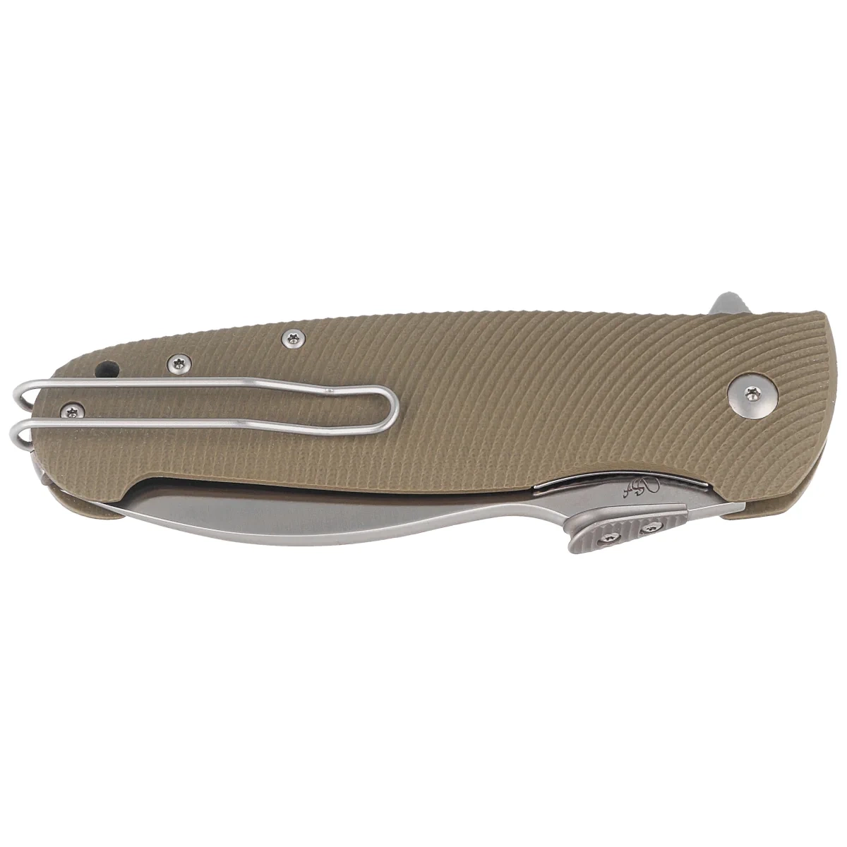 - Italo Green G10, Satin wyjątkowy folder E.D.C. skierowany do wymagających odbiorców, łączy włoski styl z wysoką użytkowością. Projekt knifemaker'a Fabrizio Silvestrellego. Głownia ze stali Böhler M390, wygodna rękojeść z kompozytu G10.